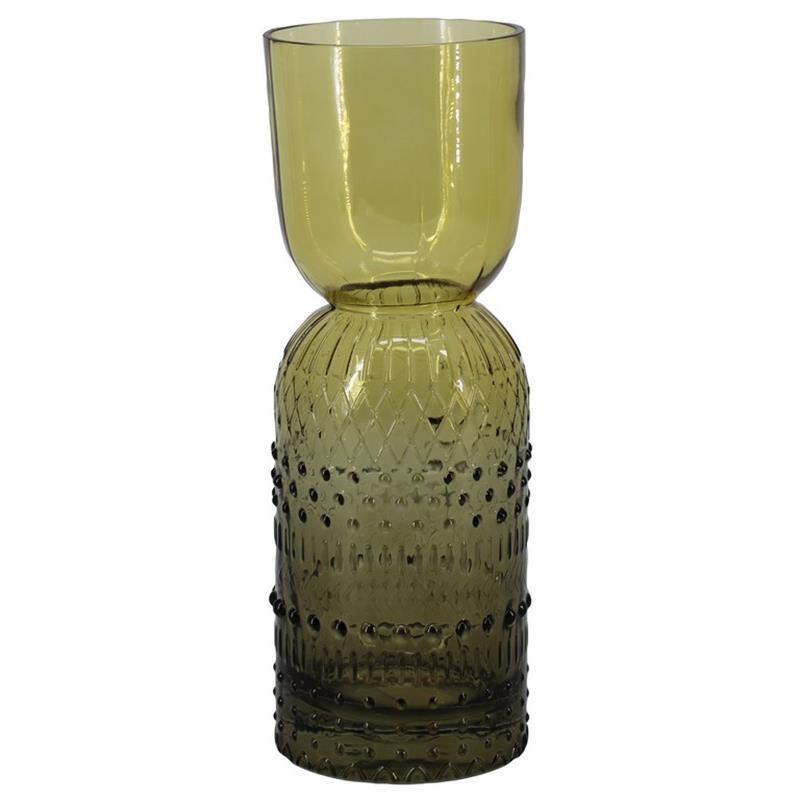 Decorative glass vase DESCON with dots, cognac-brown-clear, 11"/28,3cm, Ø4.1"/10,5cm