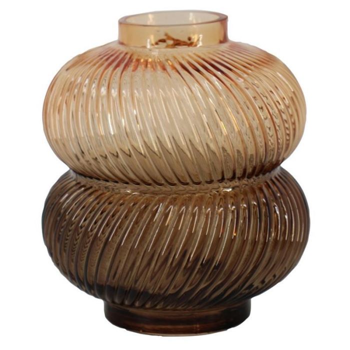 Decorative glass vase KORNELIA with grooves, amber-brown-clear, 6"/16,3cm, Ø5.8"/14,7cm