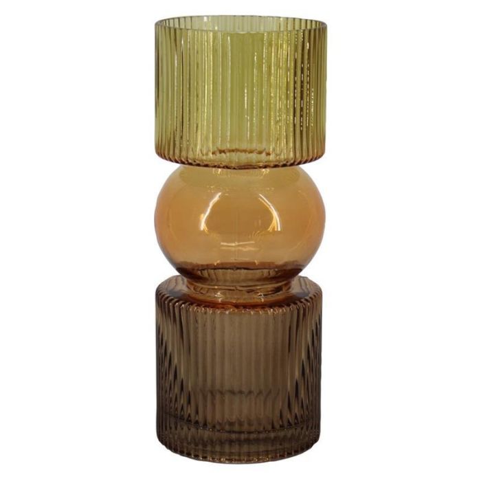 Decorative glass vase NIAMH with grooves, cognac-amber-brown-clear, 10"/25,3cm, Ø4"/10cm