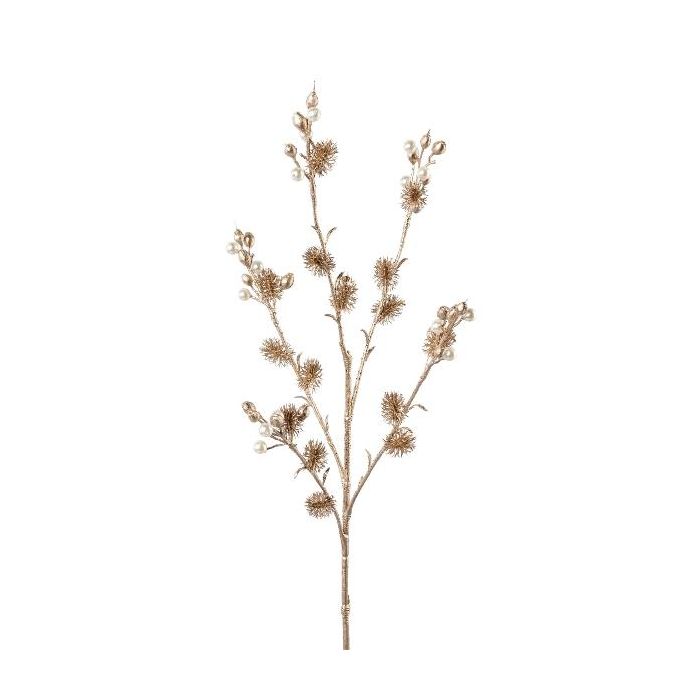 Decorative globe thistle branch FRONKA with pearls, champagne, 26"/65cm