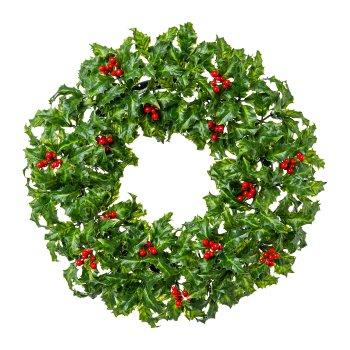 Decorative holly wreath TREFO with berries, green-red, Ø20"/50cm