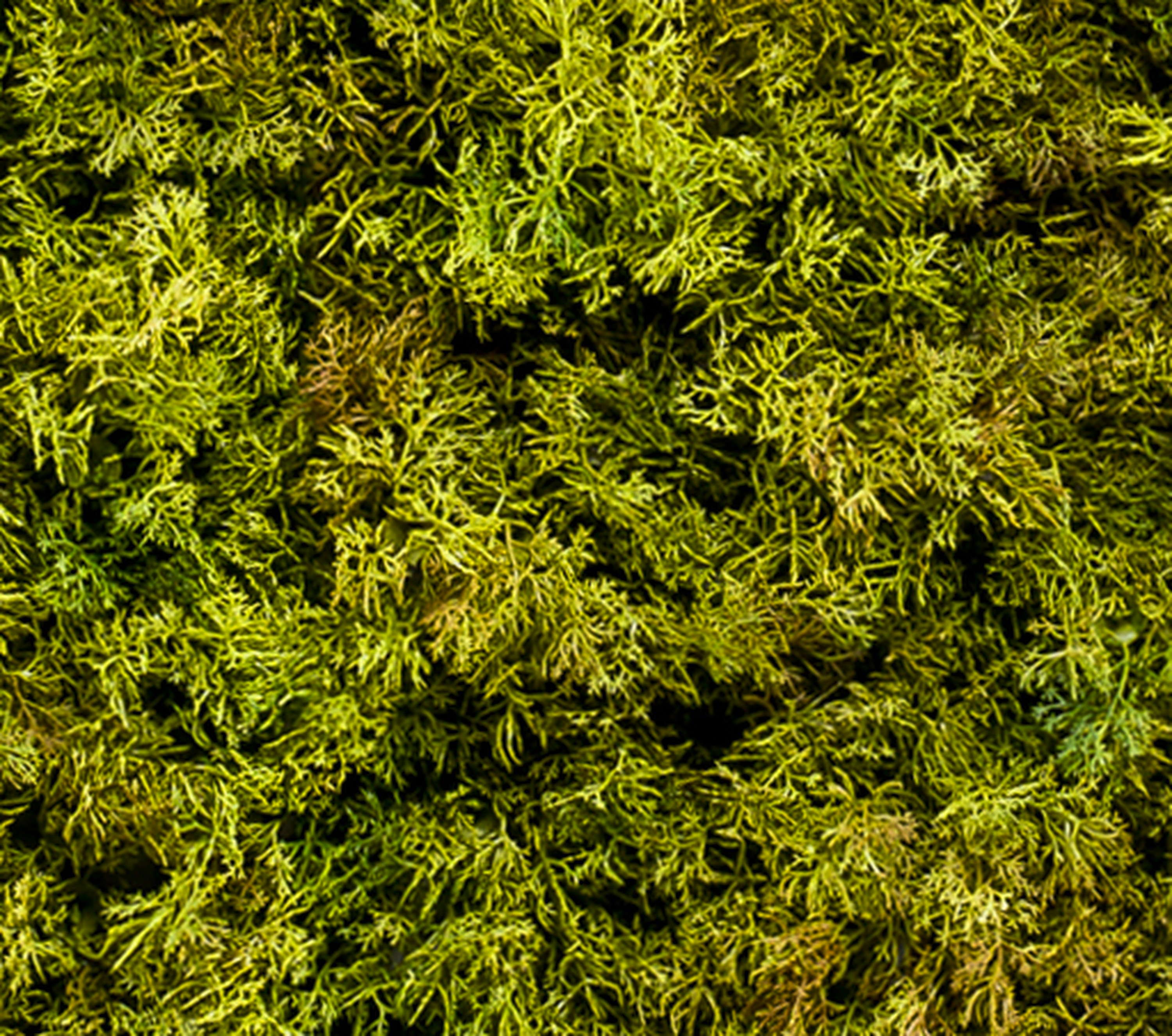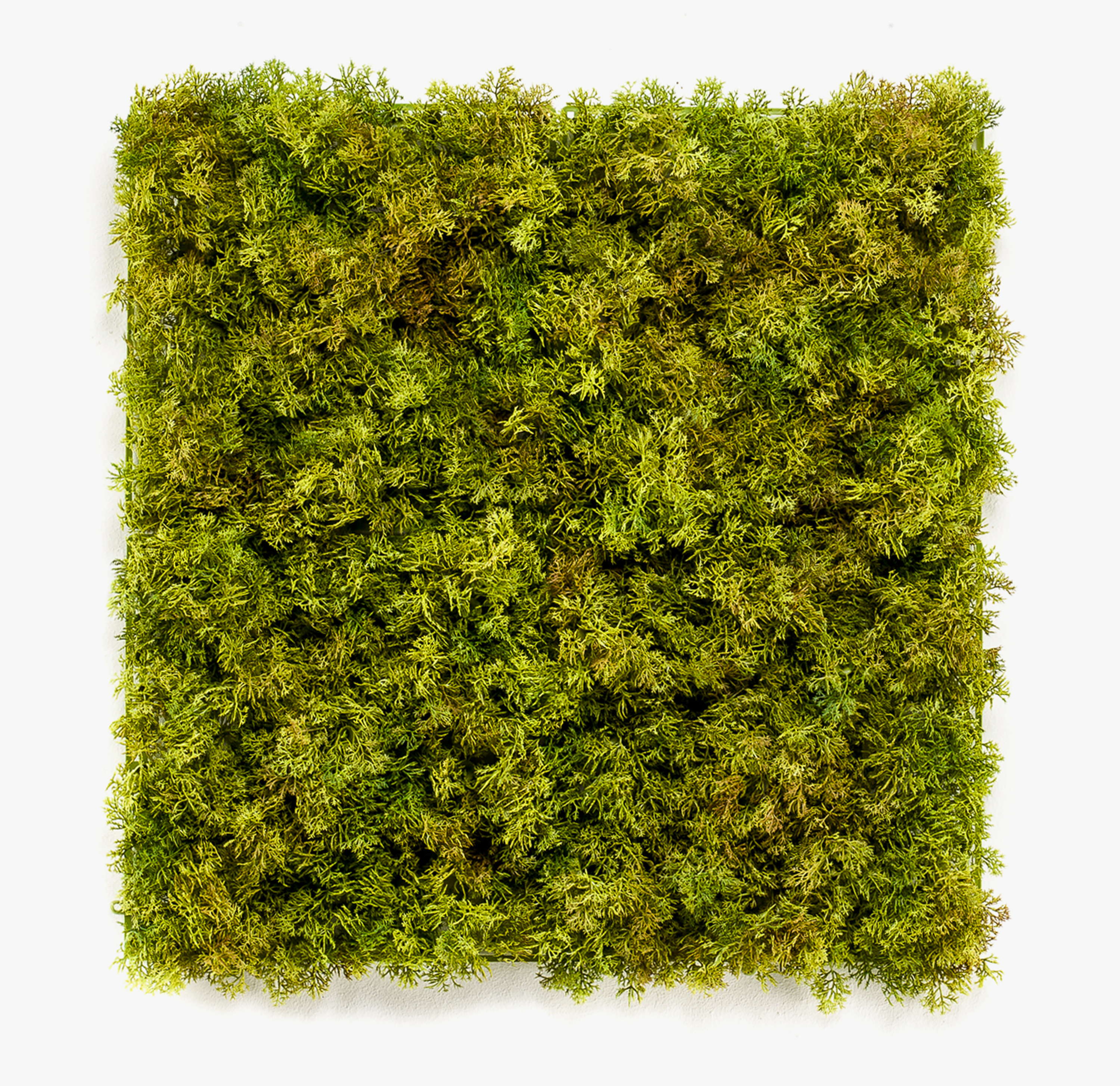 Artificial moss mat BEAS in colour green with a total size of approx. 20"x20"/50 x 50 cm. This natural-looking decoration will create a pleasing ambience in your living space.