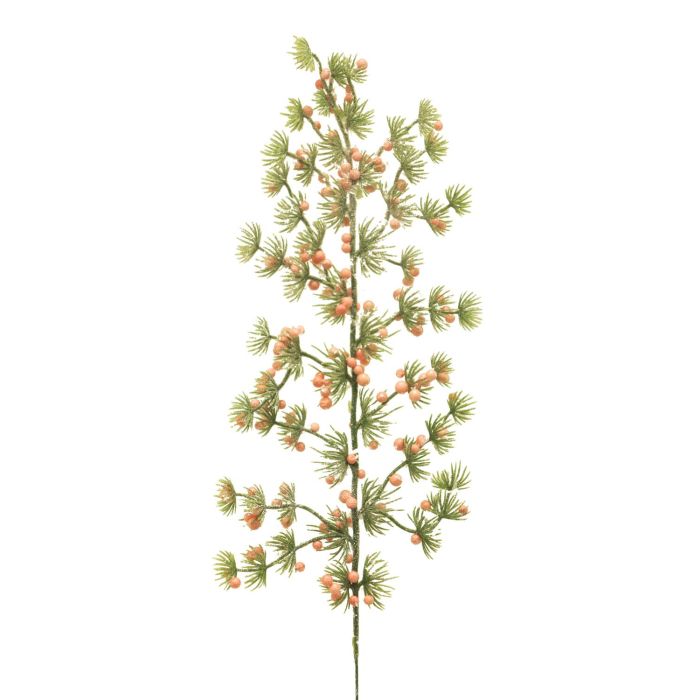 Decorative larch branch JAHELI, snowy, berries, green-orange, 18"/45cm