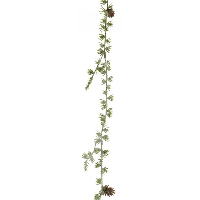 Decorative larch garland NANZIA, frozen, with cones, green, 6ft/180cm