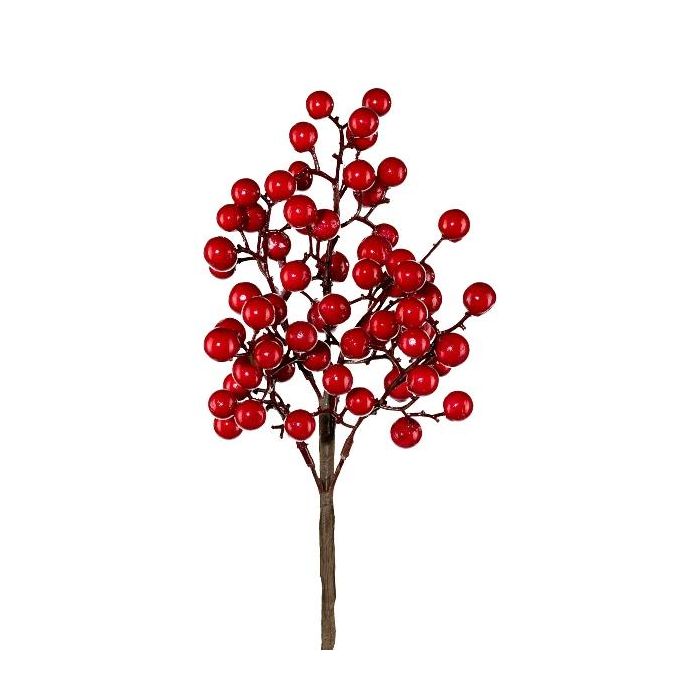 Decorative snowberry branch VROSTI, berries, red, 14"/35cm