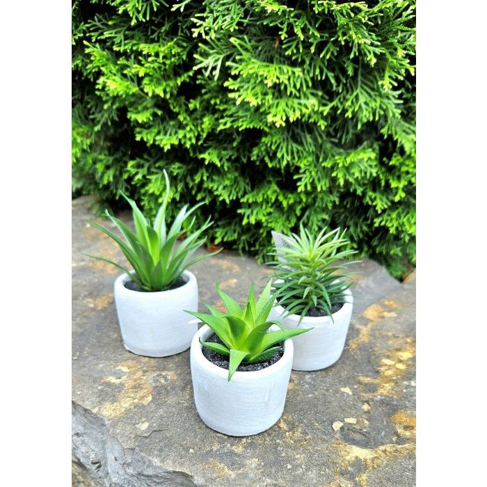 Decorative succulents FINNICK in concrete pot, 3 pieces, green, 6"/15cm