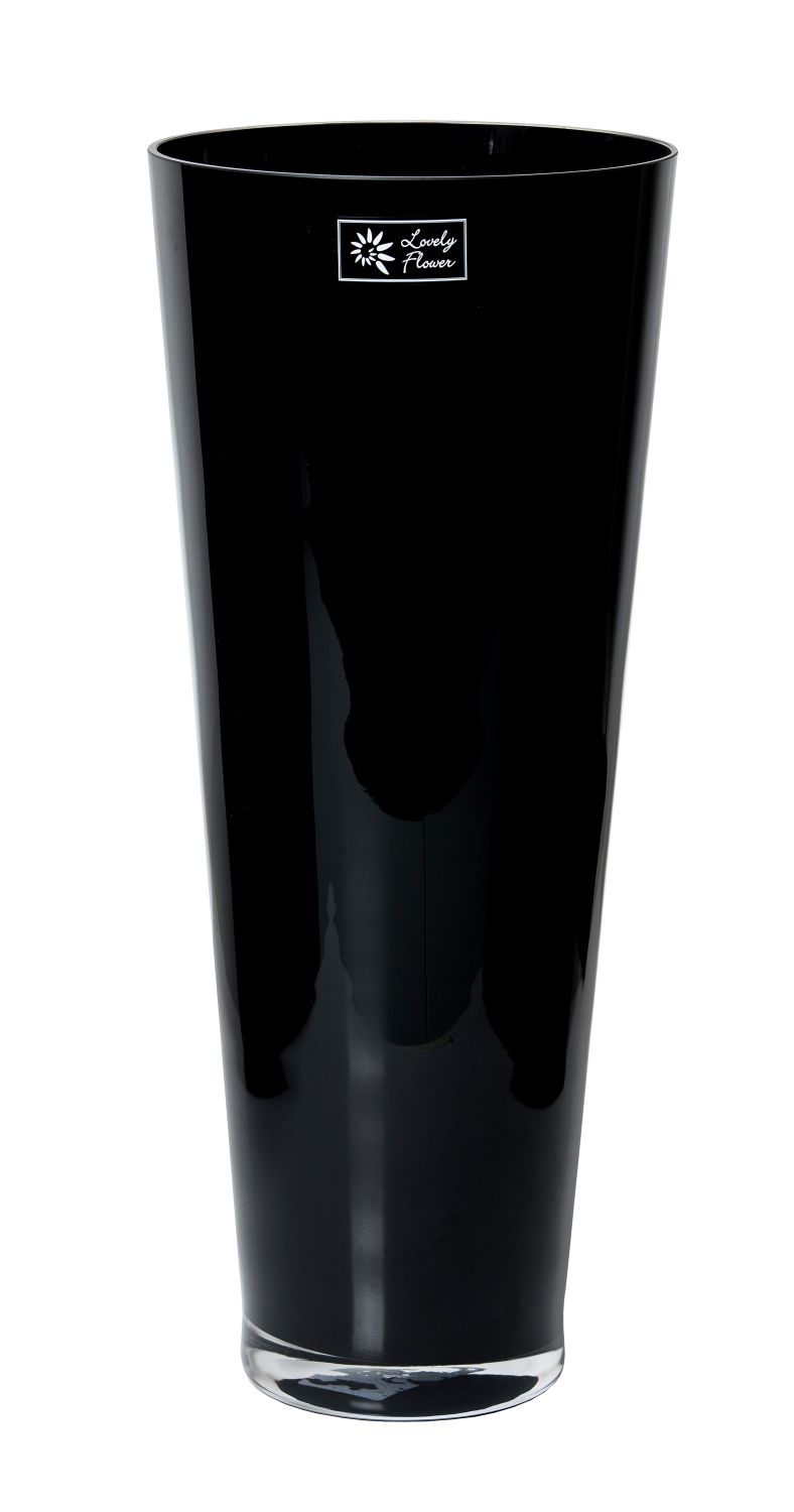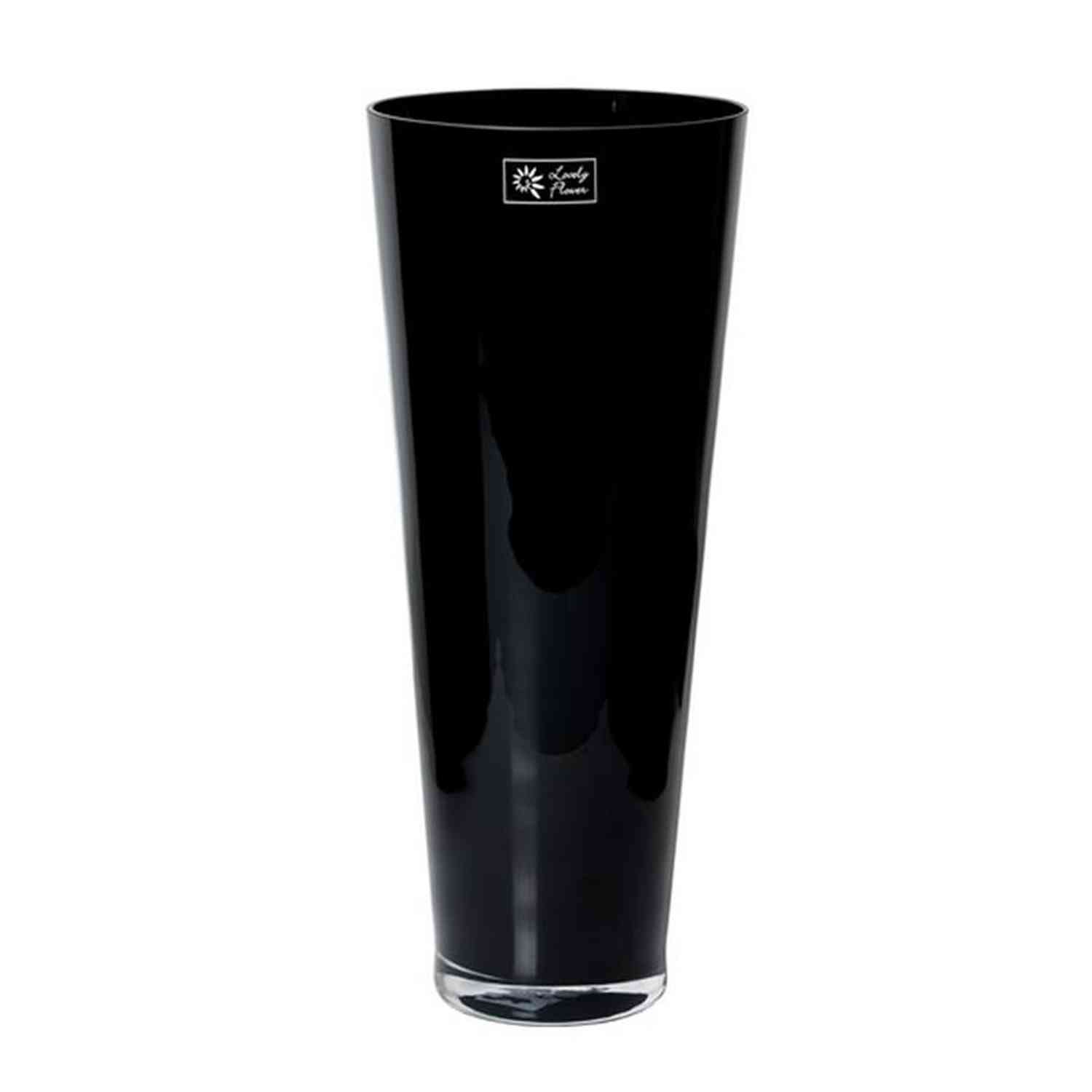 Decorative vase ANNA OCEAN, conical shape, glass, black, 17"/43cm, Ø7"/18cm
