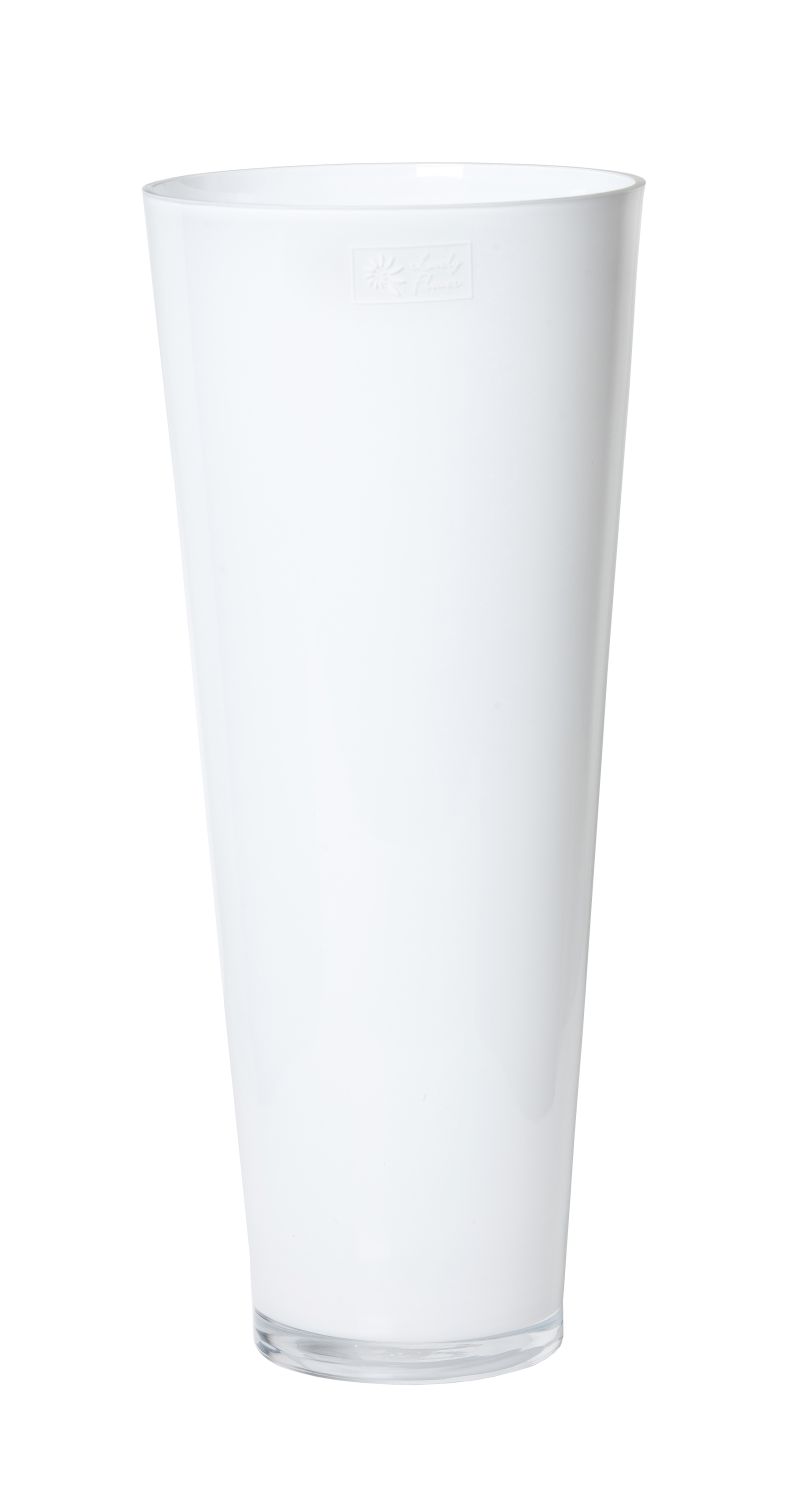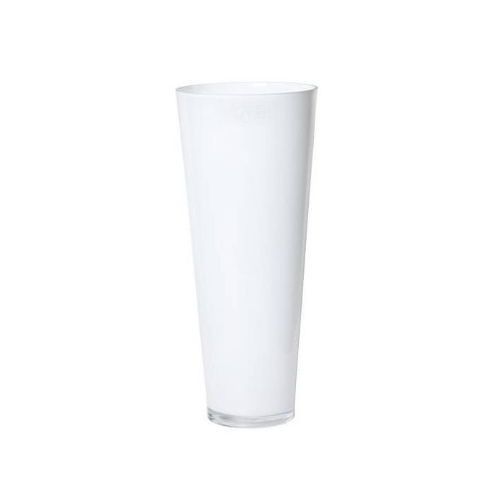 Decorative vase ANNA OCEAN, conical shape, glass, white, 17"/43cm, Ø7"/18cm