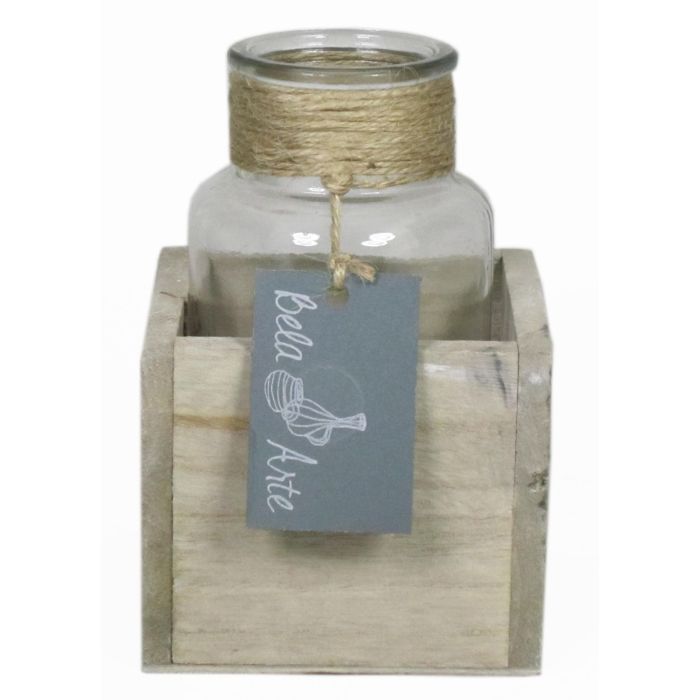Decorative vase LORRIE in wooden box, glass, clear, 3.5"x3.5"x5"/9x9x13cm