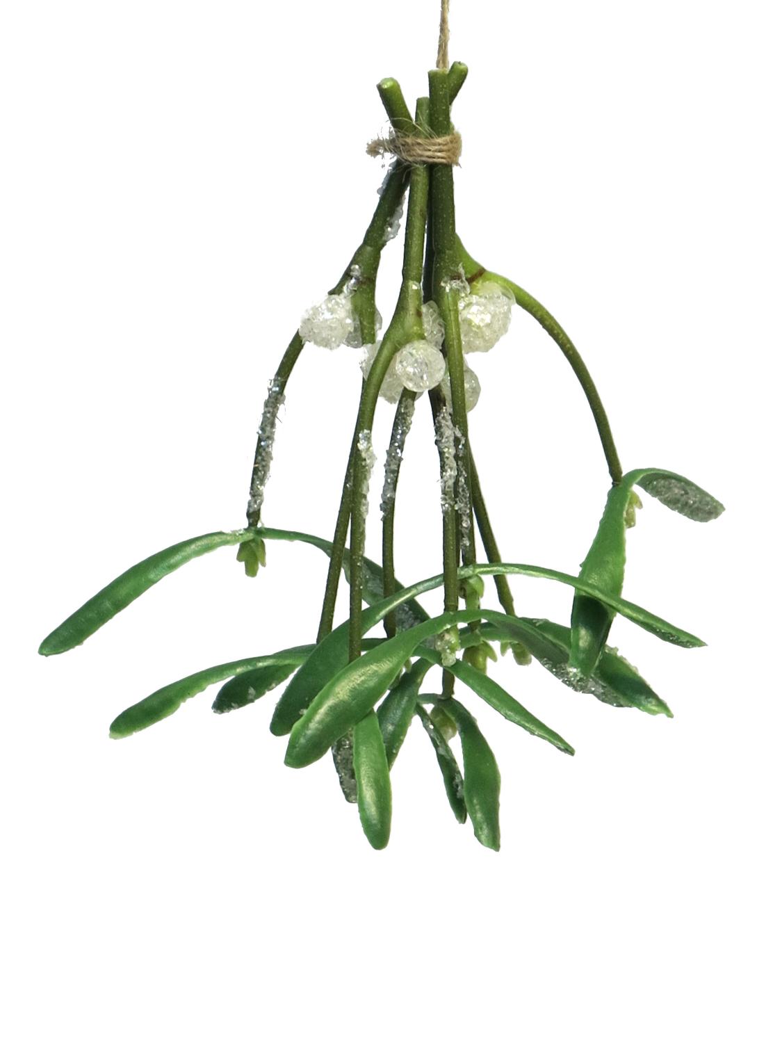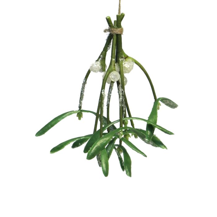 Decorative white berry mistletoe bunch NUORAN, frozen, fruits, green, 6"/15cm