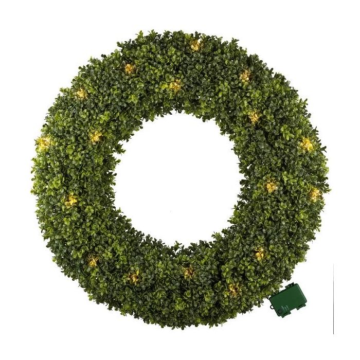 Decorative wreath Boxwood NIMTO, LEDs, battery box, crossdoor, Ø28"/70cm