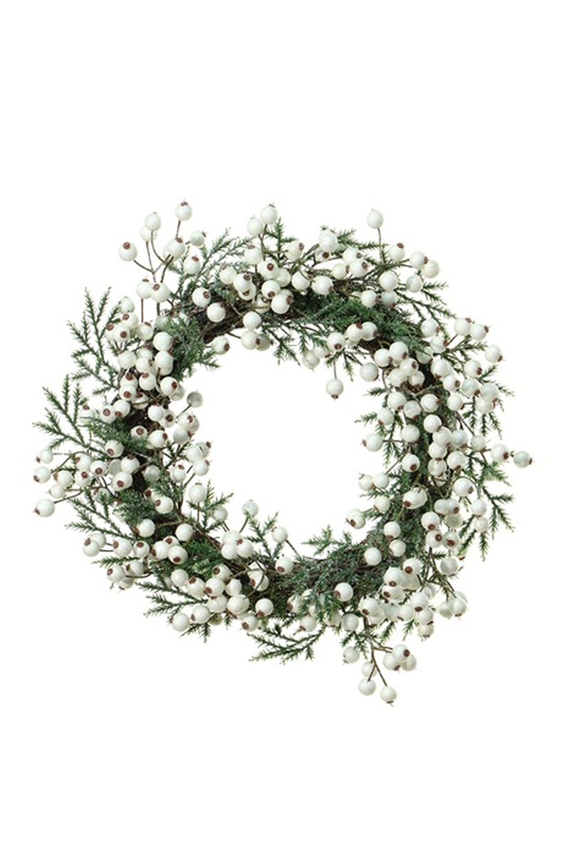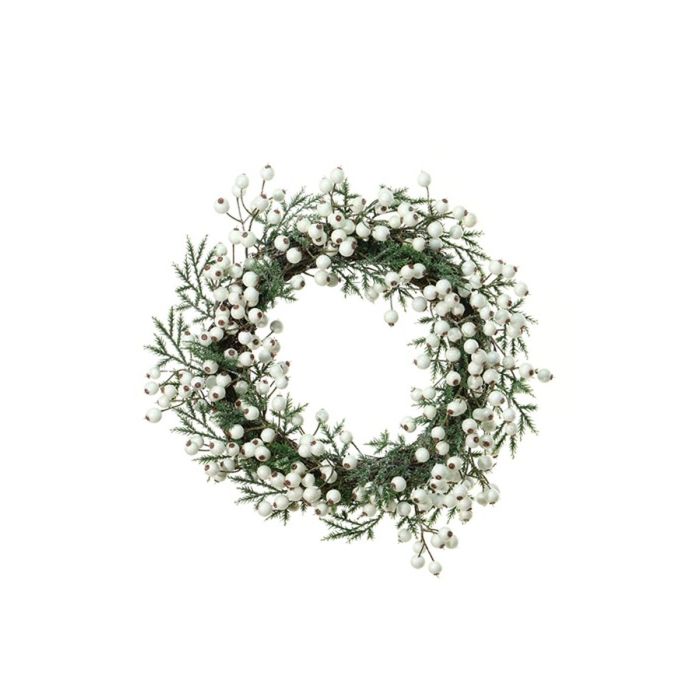 Decorative wreath of rowan and cedar NURIT, white-green, Ø 12"/30cm