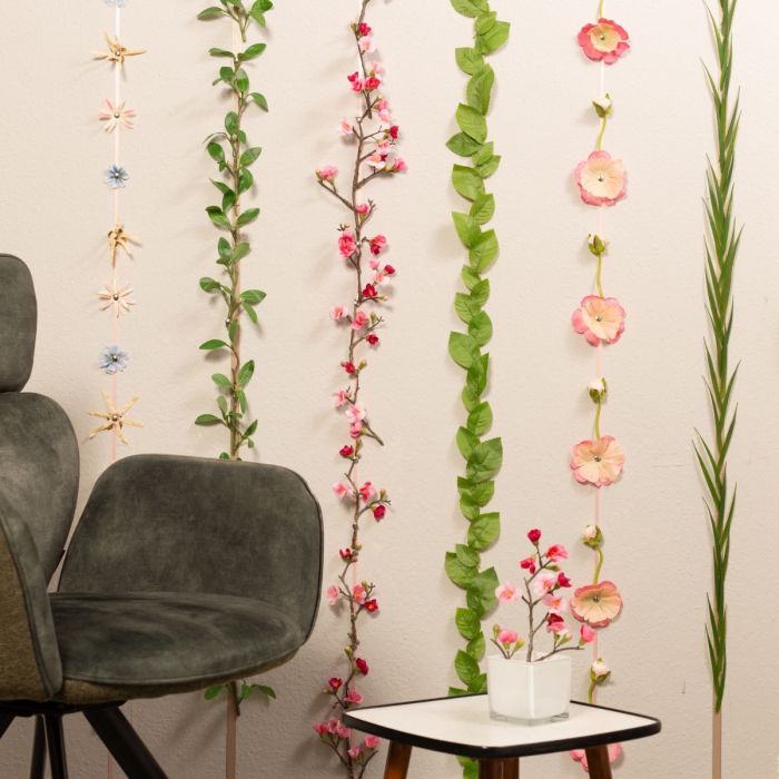 Flowers and leaves! We have expanded the ‘Spring Fever’ look and designed more flower and leaf tendrils, showing you additional techniques for designing a 3D wall mural using simple methods. The different rows were also created from leftovers. Lush ranunculus flowers can be taken apart, and you'll often be amazed at how many individual textile leaves a ranunculus has. Shop the look!