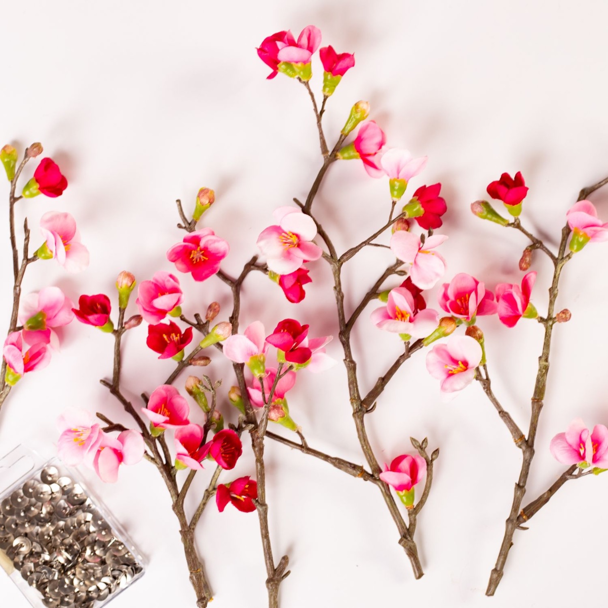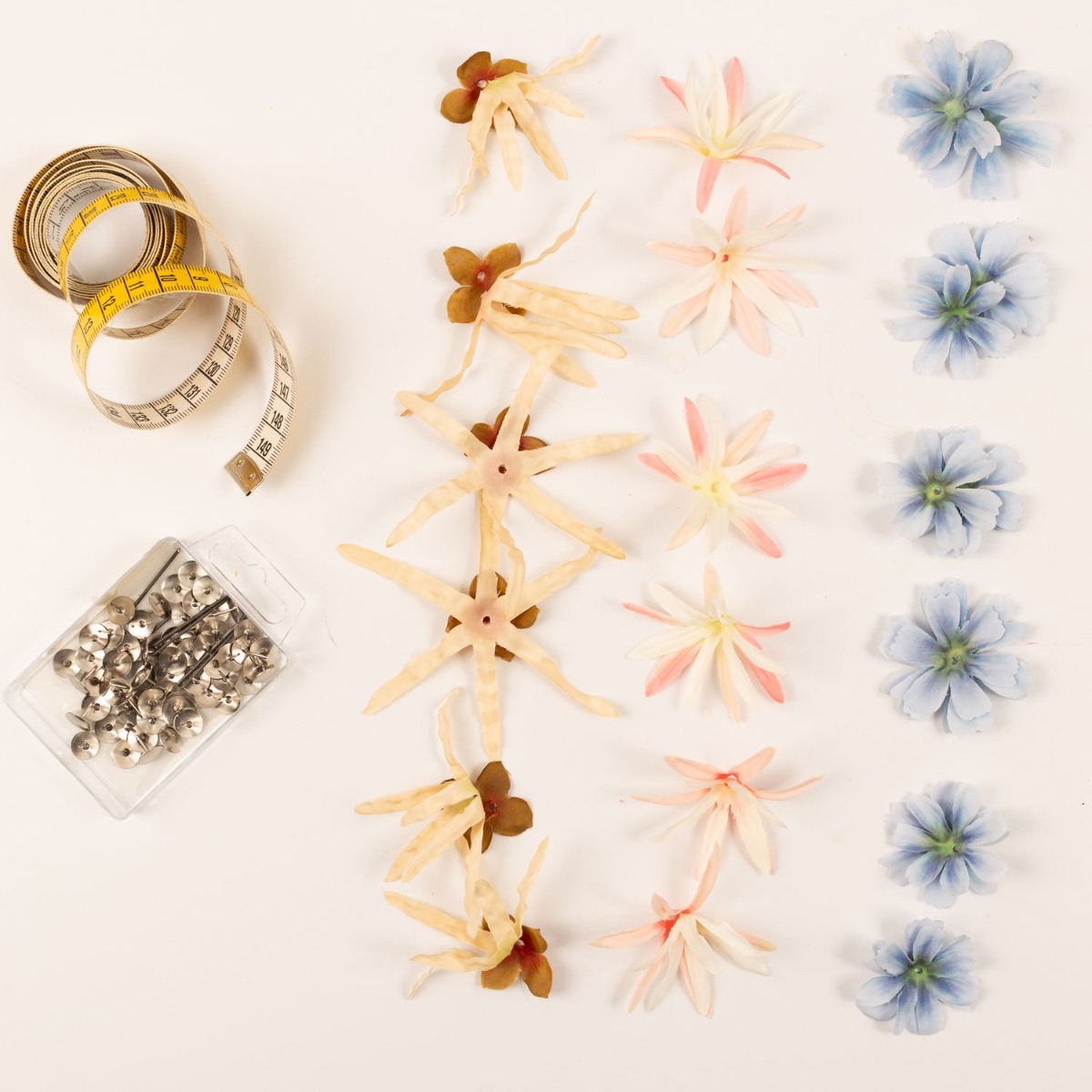 Pins: The easiest method is to attach them with pins. This works particularly well with the petals because the pin also represents the pistil. You can also colour-coordinate them by using coloured pins.