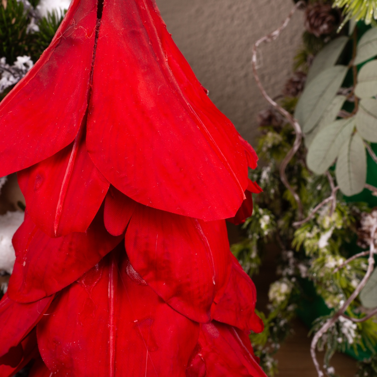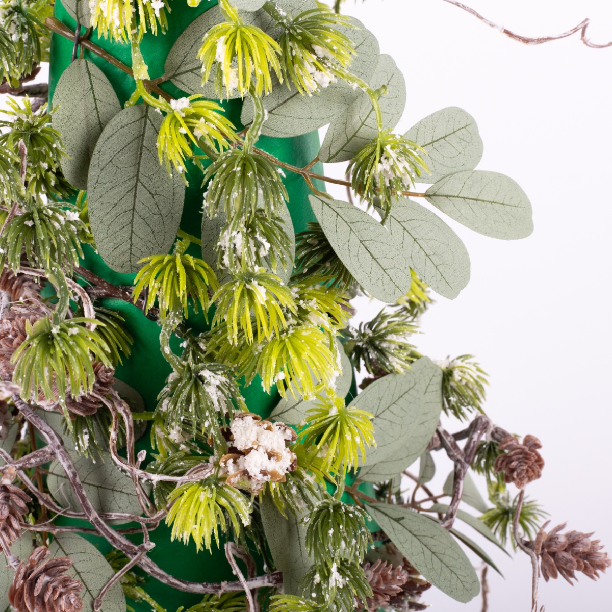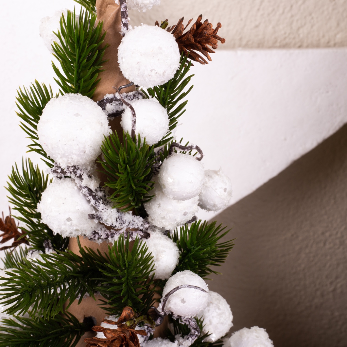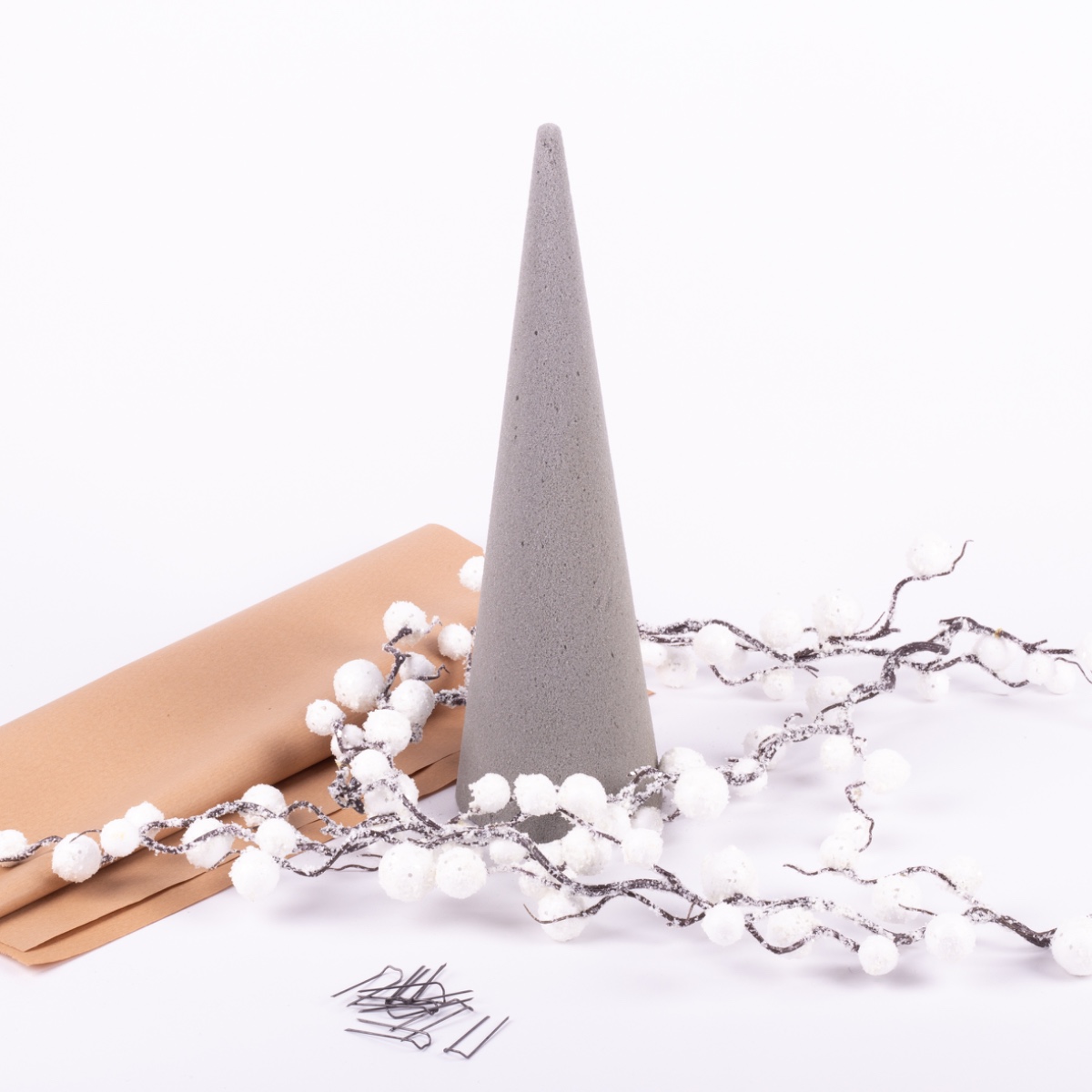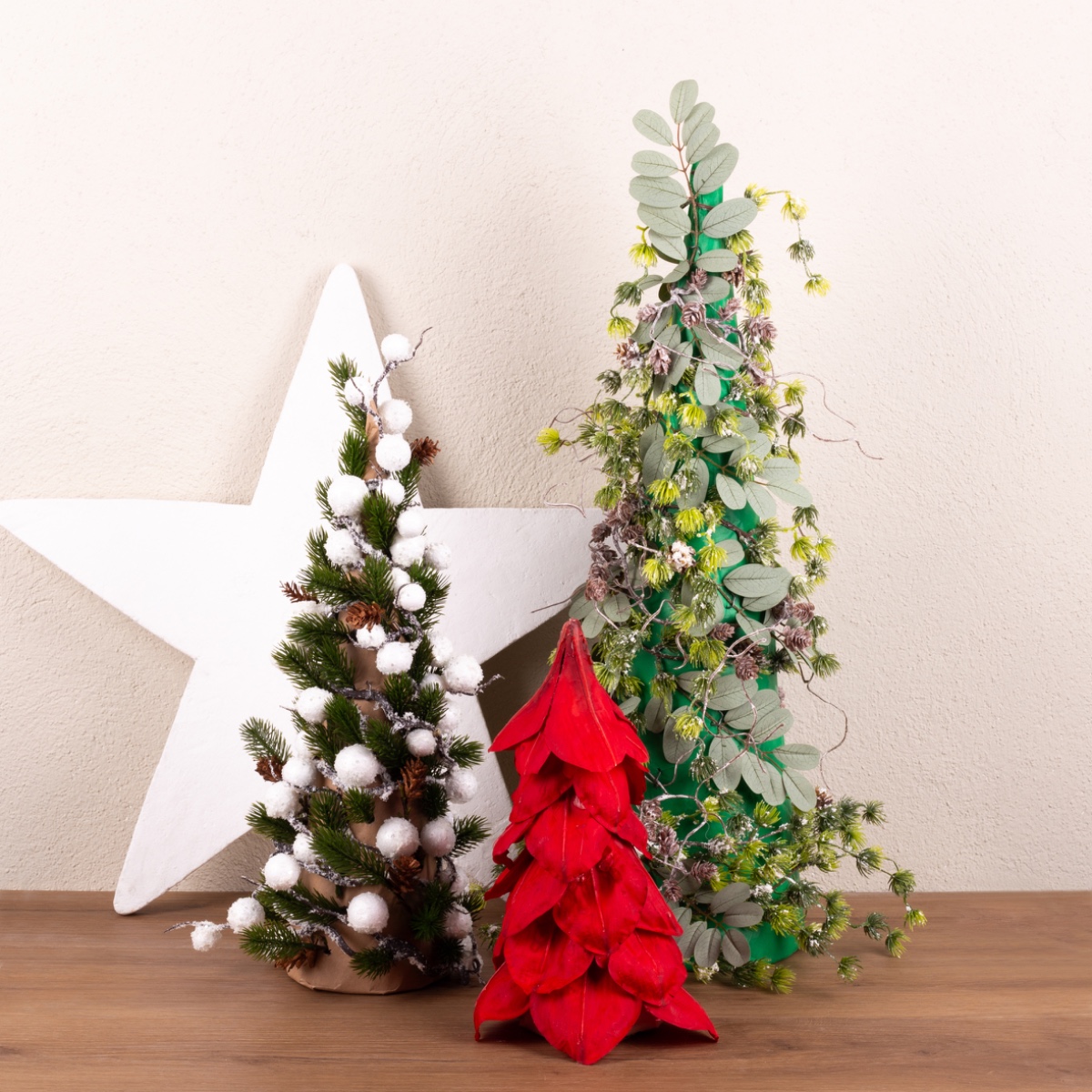 Red, green and white! These colours always create a Christmas atmosphere. Our huge range of floral foam shapes inspired us to create this look. When decorated correctly, these cone-shaped structures can look like Christmas trees. So we simply designed our own little trees. Perfect for creating a winter atmosphere in your home. Shop the look!