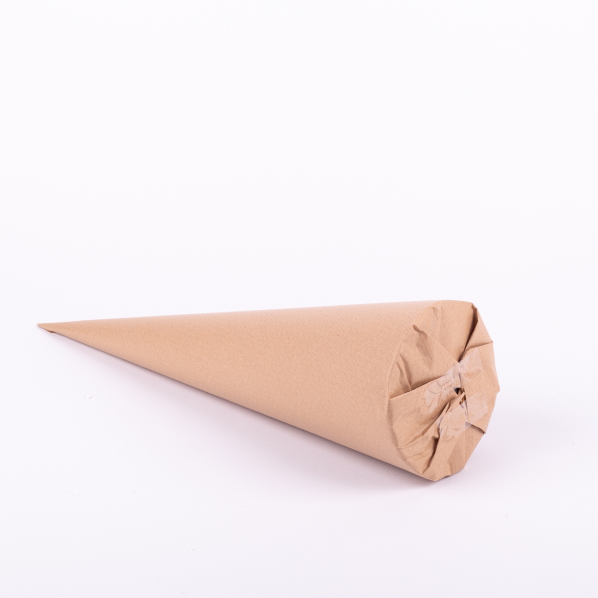 1. Wrap the cone with the coloured paper and secure it with adhesive tape.