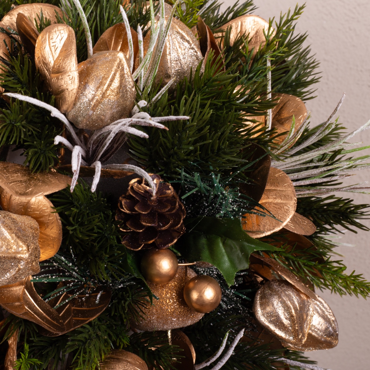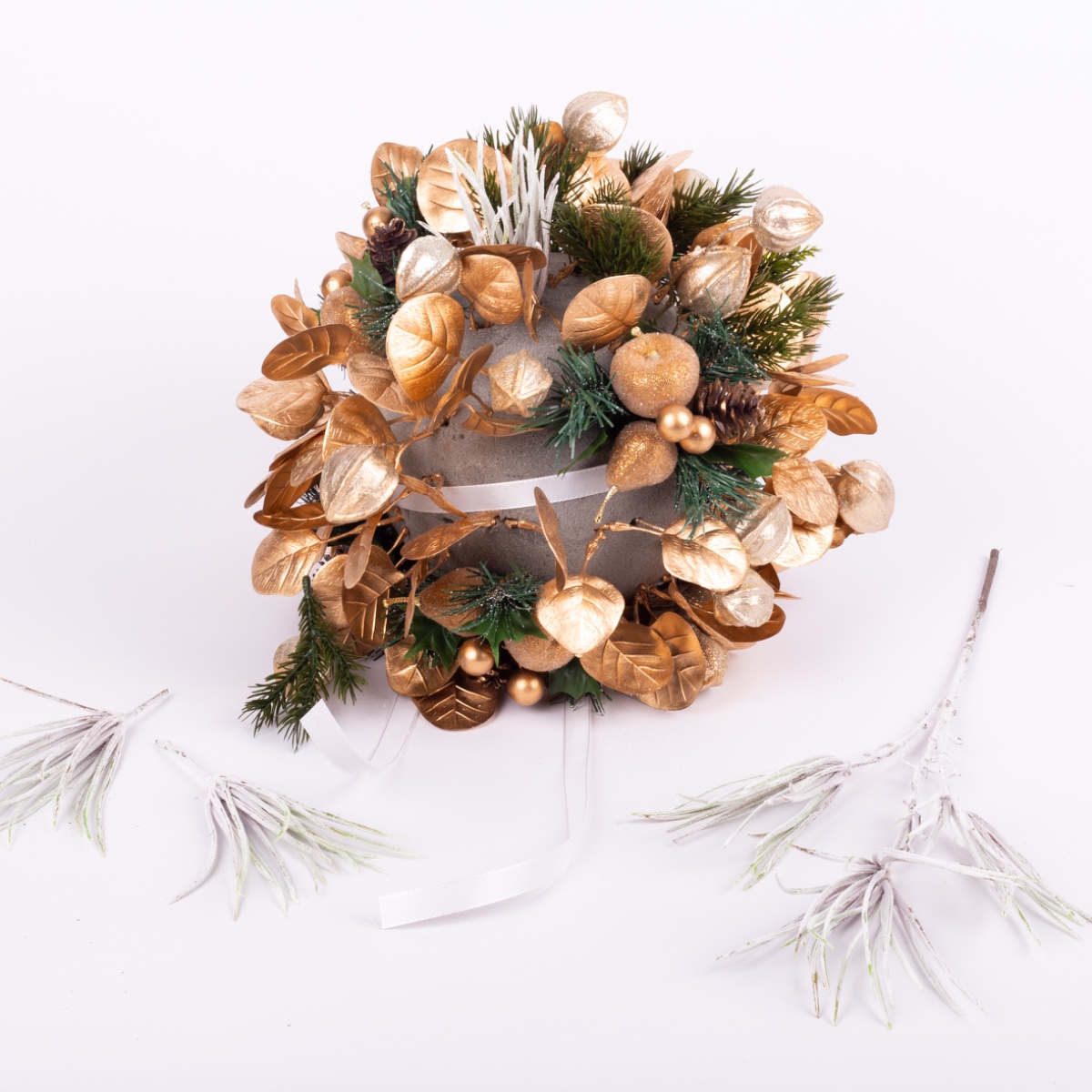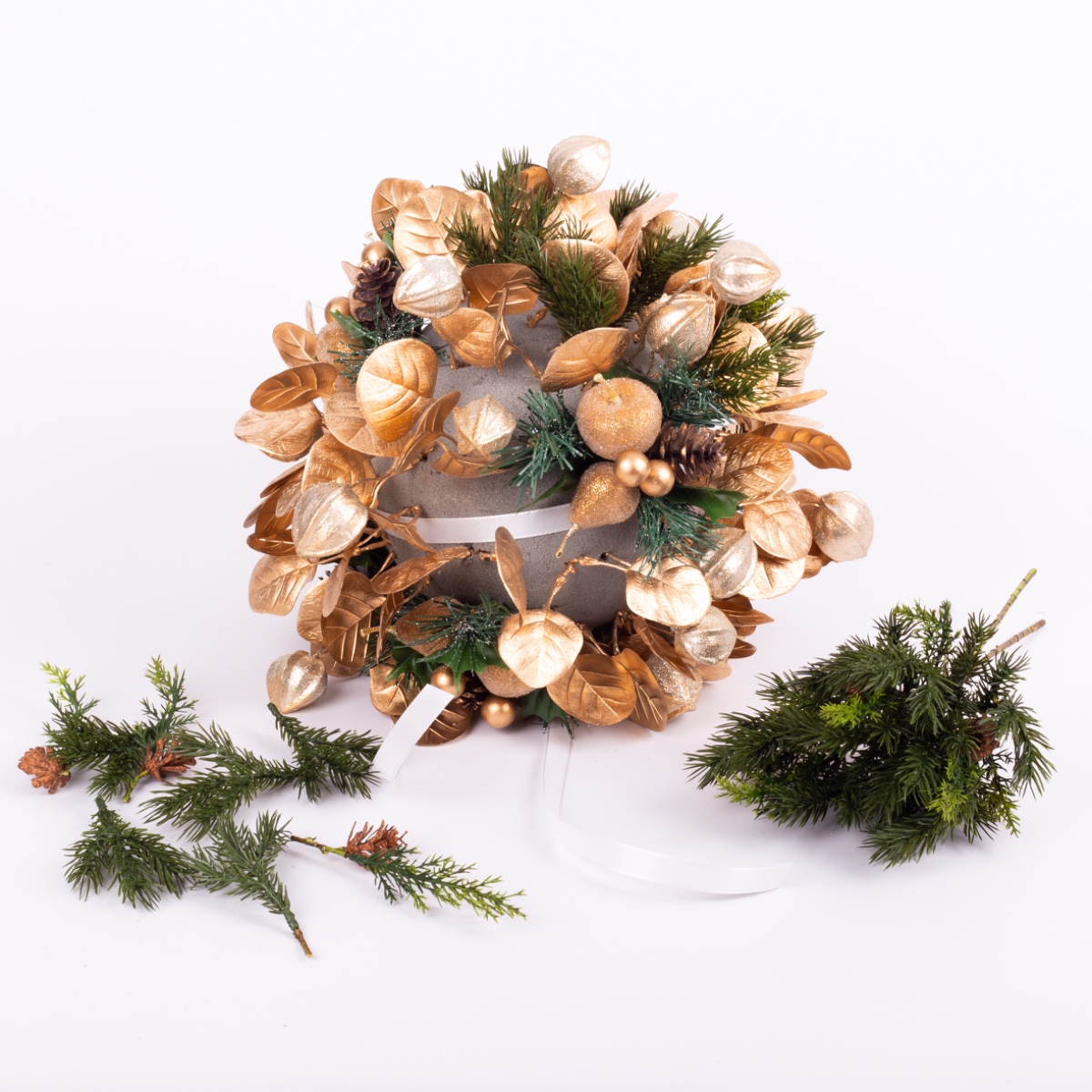 It is important that as little of the floral foam as possible is visible at the end. Needle branches are particularly suitable for this.