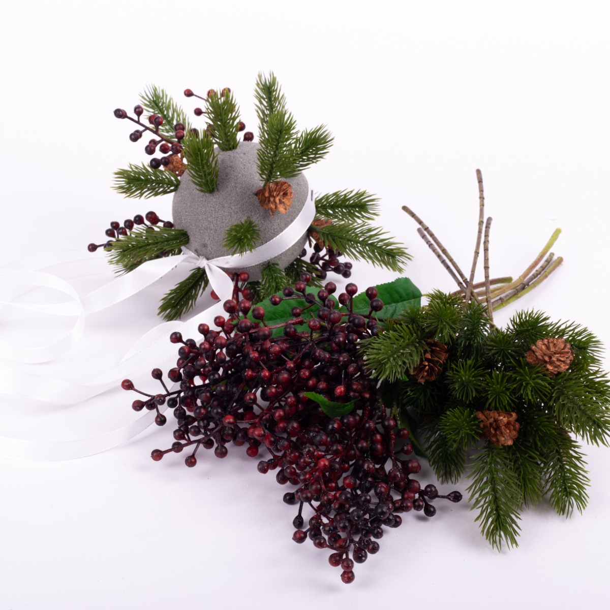 2. Use pliers to separate the small branches from the large stem. Then simply stick the small branches into the ball. Make sure they are evenly distributed.