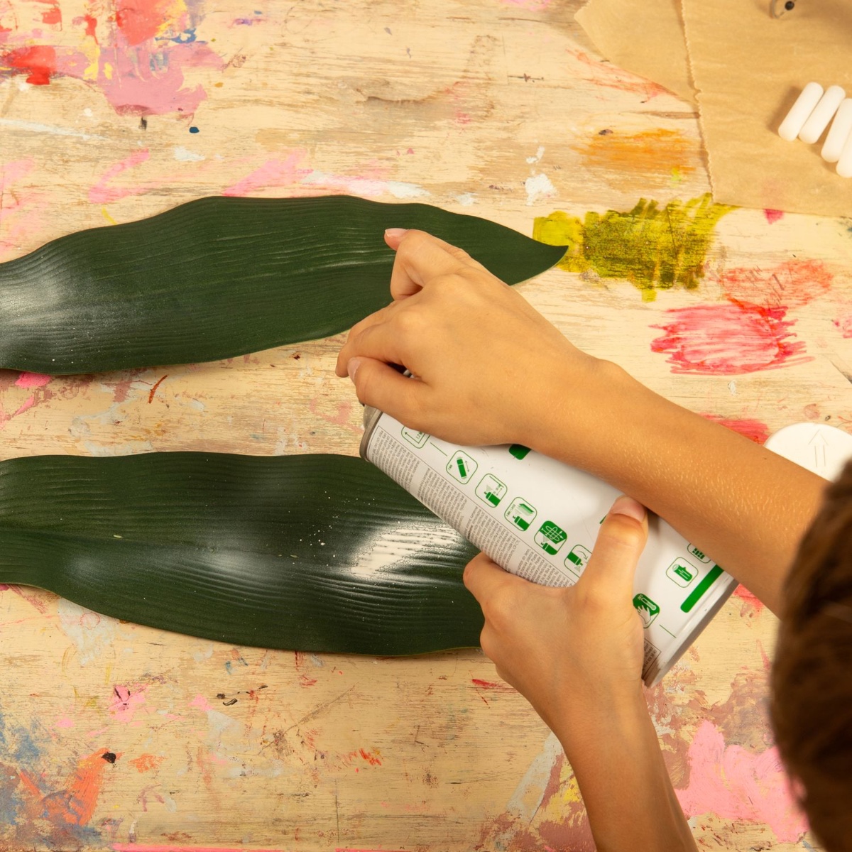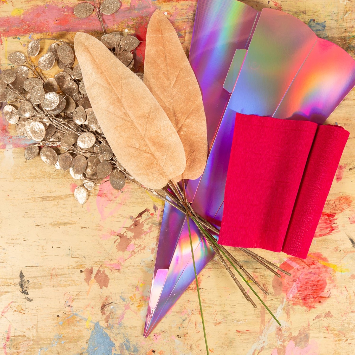 1. Separate the large leaves from the stem, colour them with the desired colour and leave to dry.