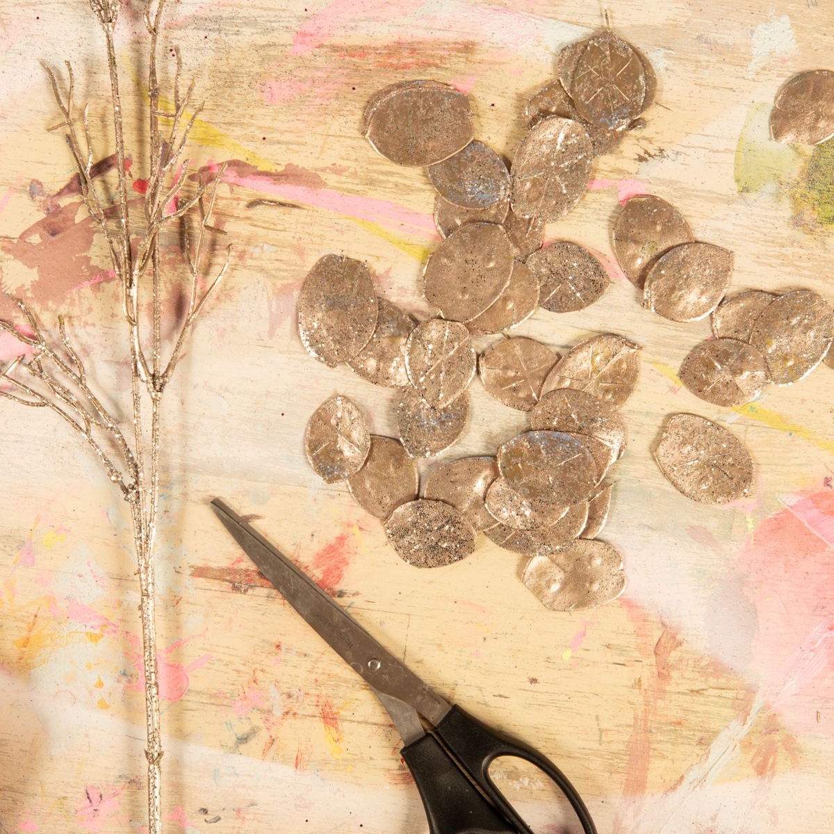 4. Separate the small silver leaves from the twigs and round them off a little with scissors if necessary. These will be used for the fish scales.