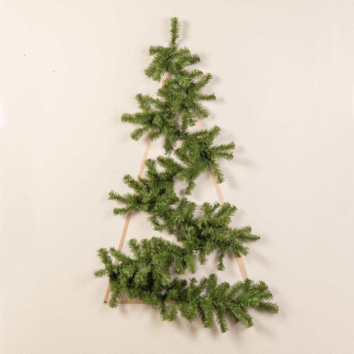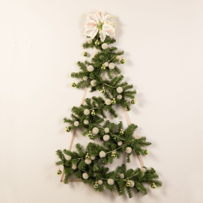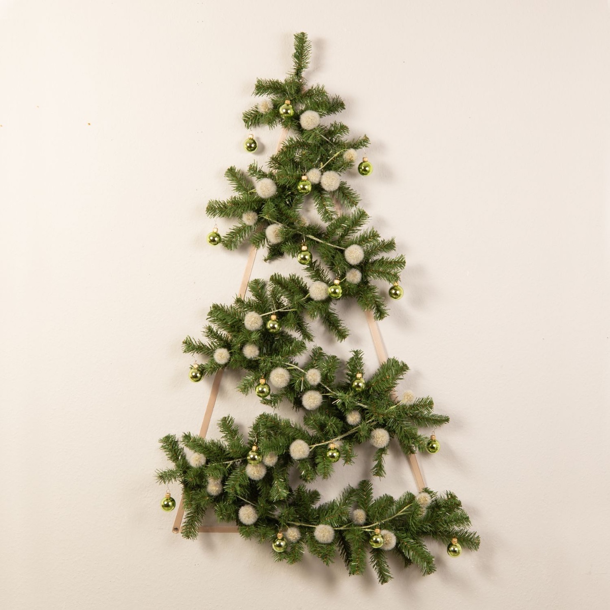 Practical and space-saving! Admittedly, this wall Christmas tree is not a novelty, but for us as artificial plant professionals, it is simply one of our craft ideas. Here we provide you with detailed instructions with measurements and layouts so that you can recreate this wall tree without spending too much time. Shop the look!