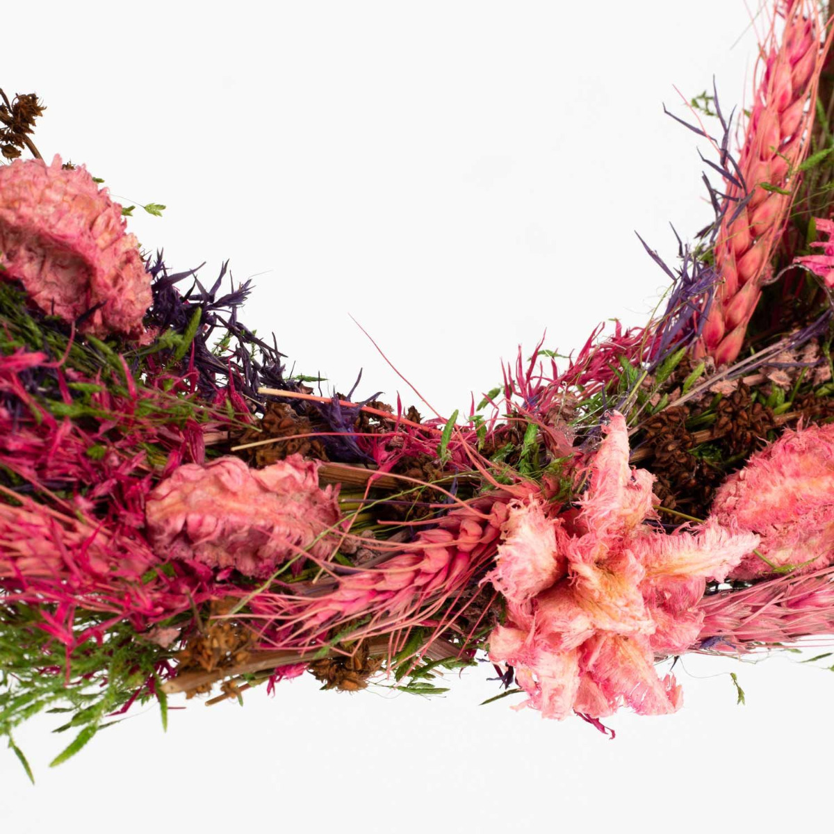 Dried flowers wreath GALENO on ring, pink-purple, 36,5cm, Ø30cm