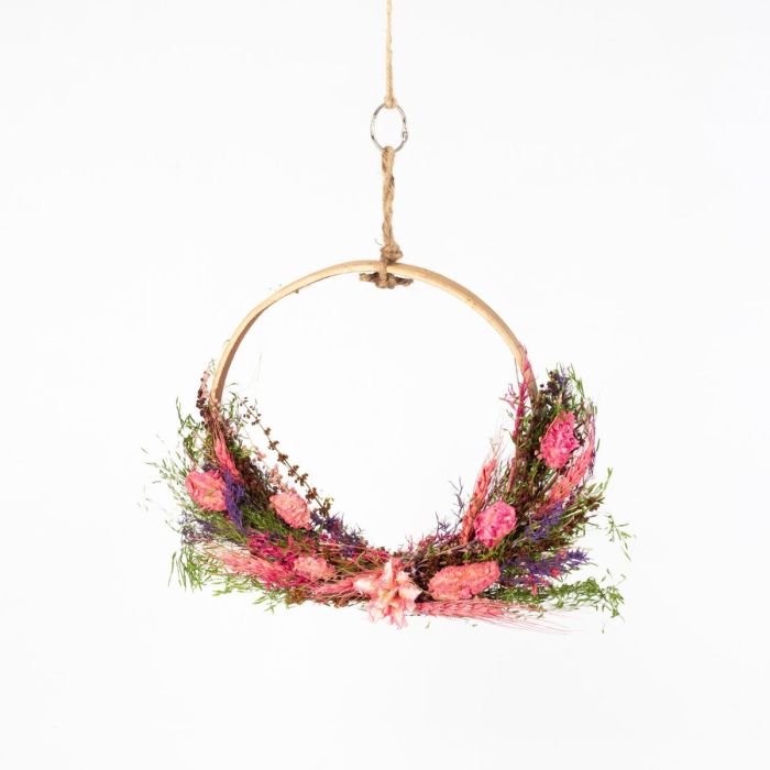 - Metal ring with dried flowers along with hanging rope for easy attachment to the ceiling, etc.