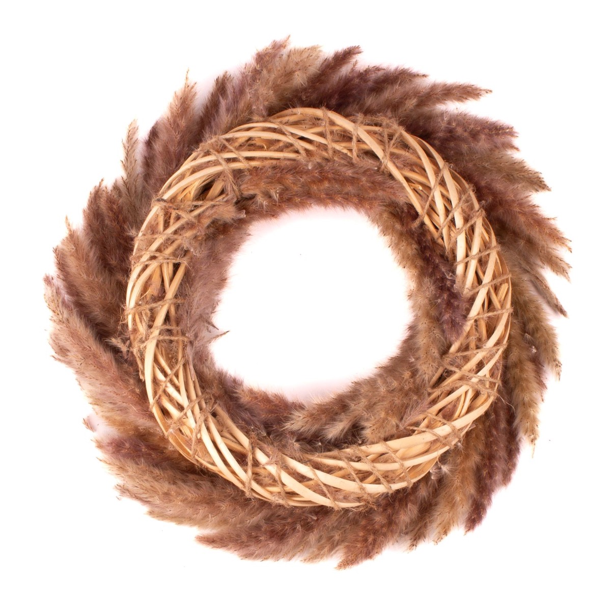 Dried wreath of pampas grass RUMENADA, beige-brown, Ø14"/35cm