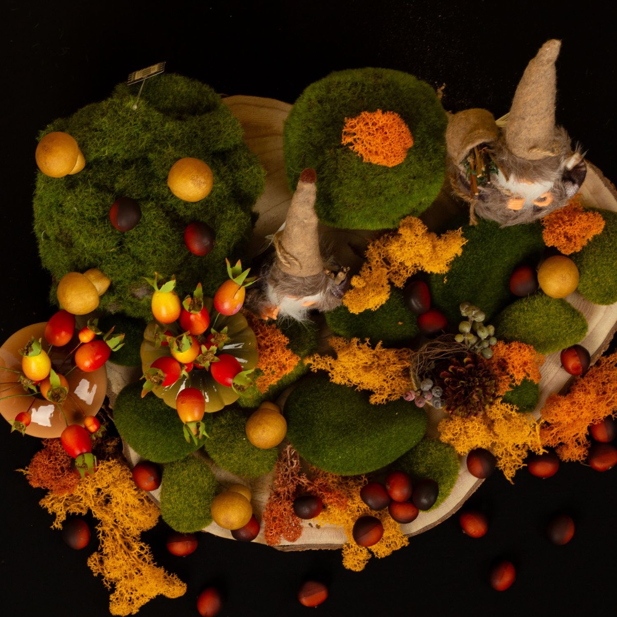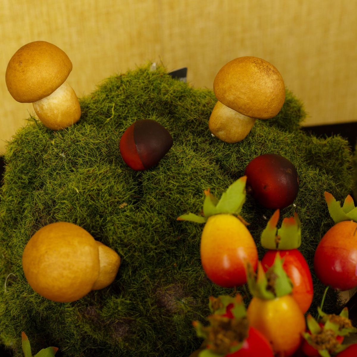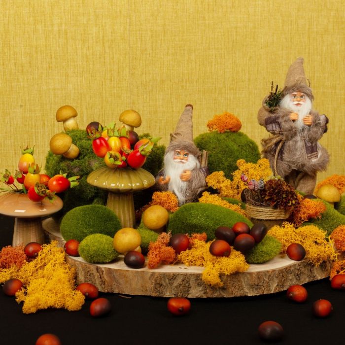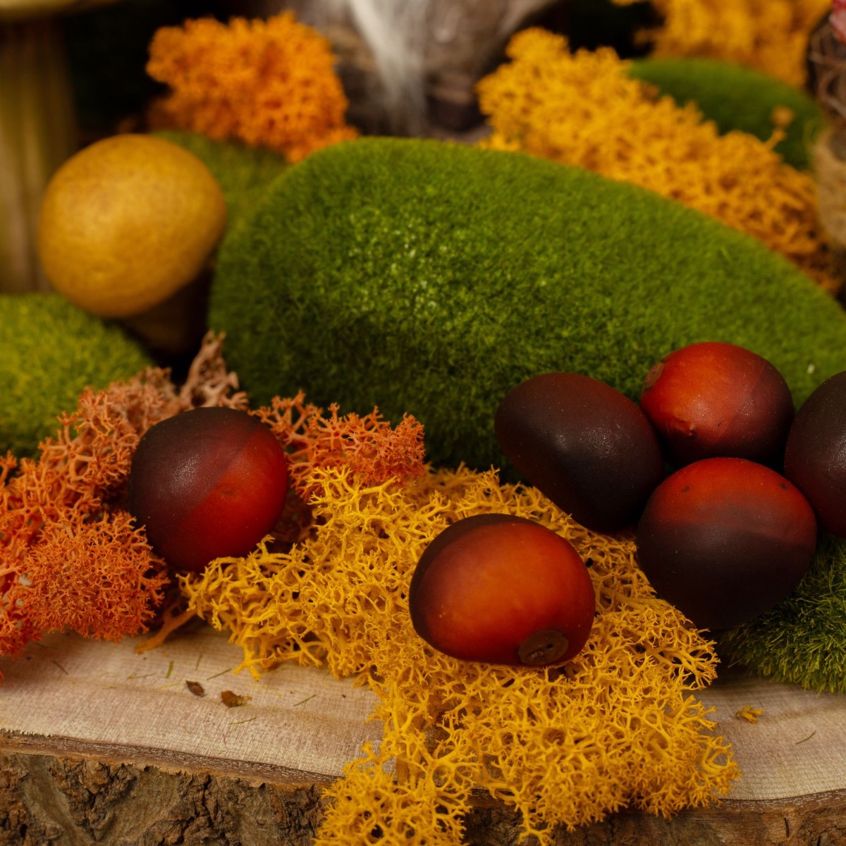 Moss, gnomes and mushrooms! With this look, we have created a wonderful autumn world that invites children and adults to dream. The highlight of this autumn decoration are our ceramic mushrooms, which can be used as a small vase. The large wooden disc is the perfect base for our world, which has been decorated with small and large moss stones. A magical hilly landscape comes to life, waiting for the industrious gnomes to move in and collect the delicious mushrooms and chestnuts. Shop the look!