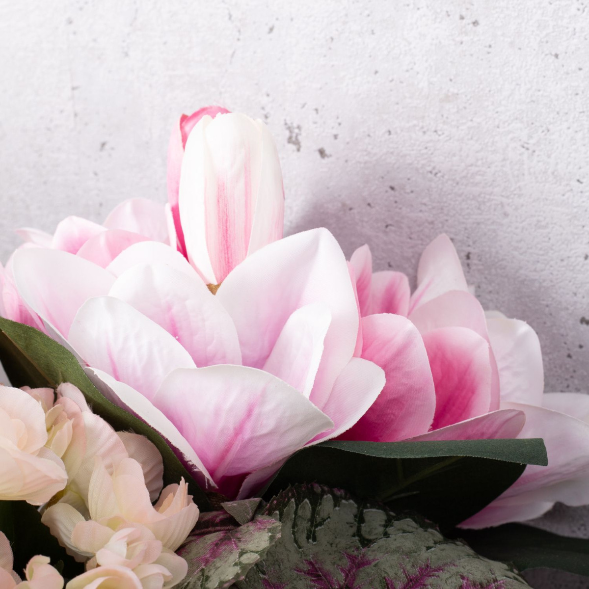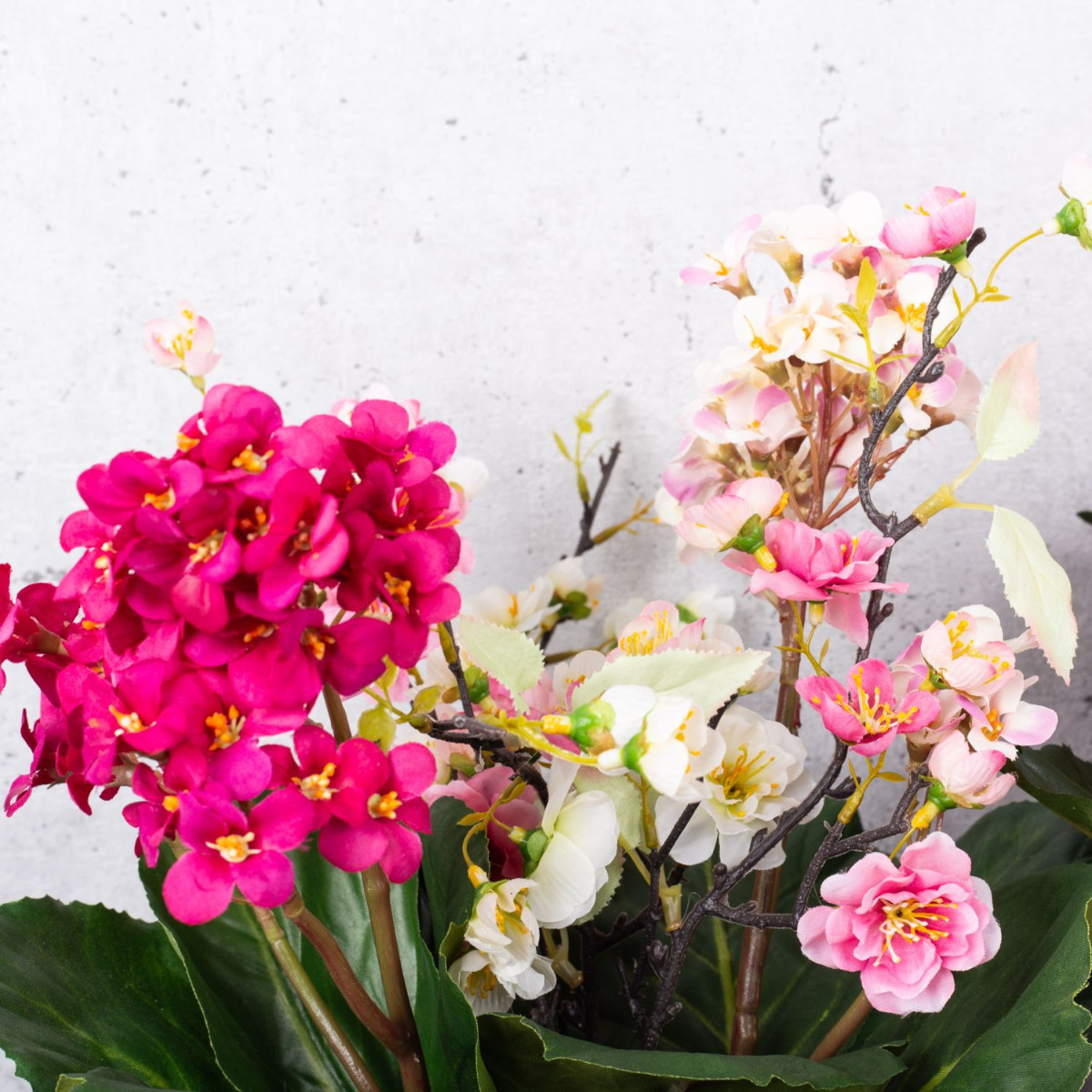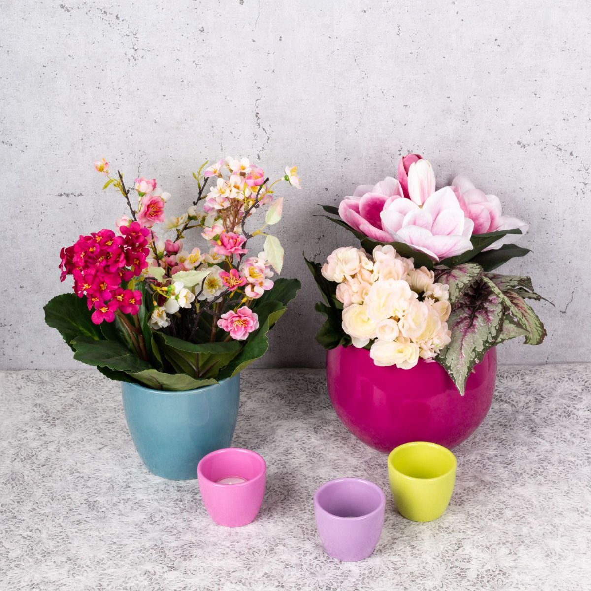 Colourful and cheerful into summer! Small flower pots from the Tehran series have been converted into tealight holders and illuminate the monochrome design of the early summer flowers. Here it is particularly visible what splendour nature brings to light. Magnolias, begonias, bergenias and cherry blossoms have been put together in this look to create a summery arrangement. A classic for every household. Shop the Look!