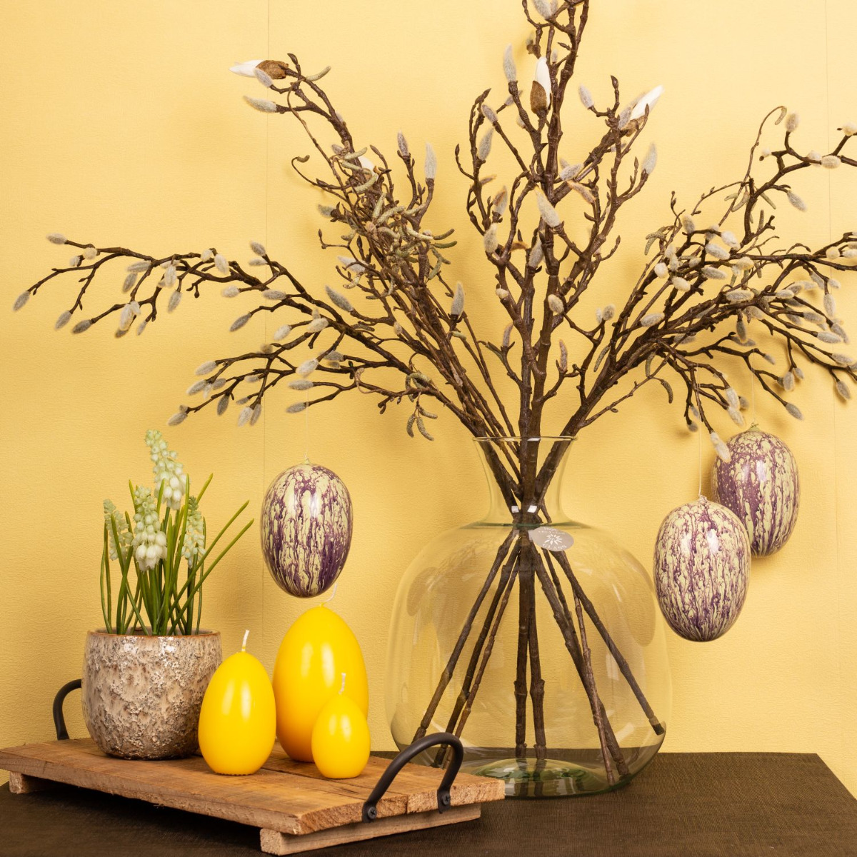 Design tip: Choose the colour of the Easter eggs so that this look is not too colourful. Distribute twigs evenly in the vase.