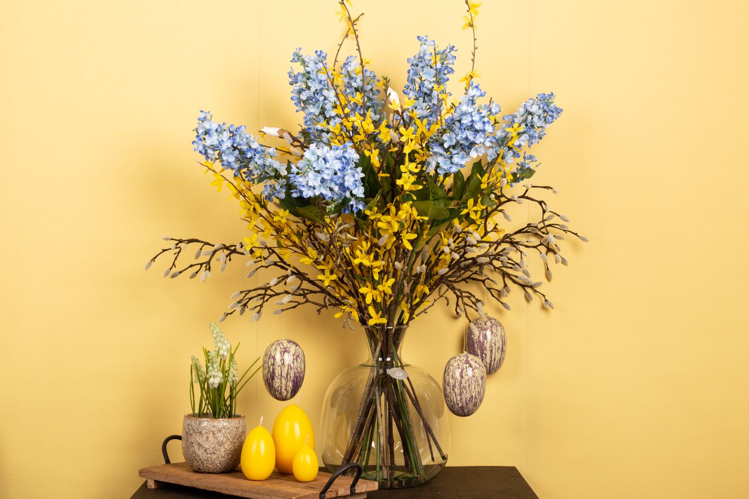 Design tip: Choose the colour of the Easter eggs so that this look is not too colourful. Distribute twigs evenly in the vase.
