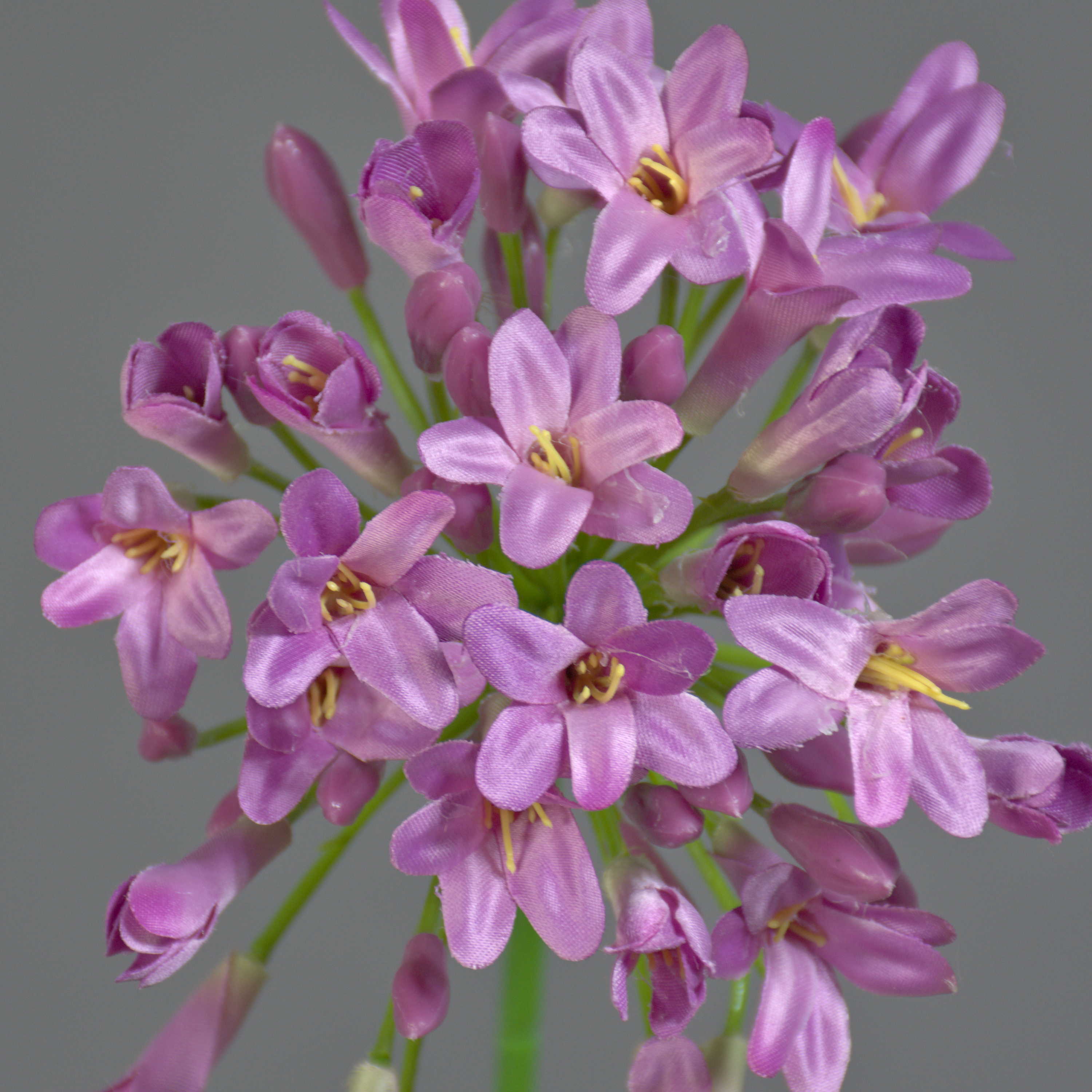 - Comprised of a spherical flower ball with closed and several open purple-coloured blooms