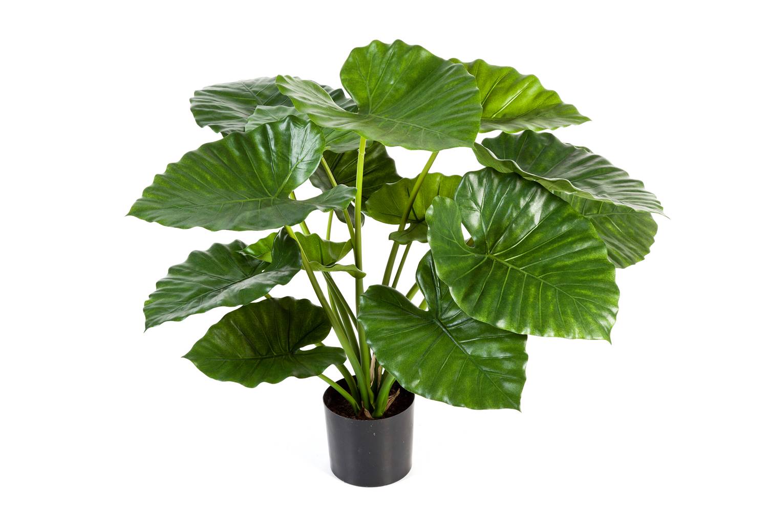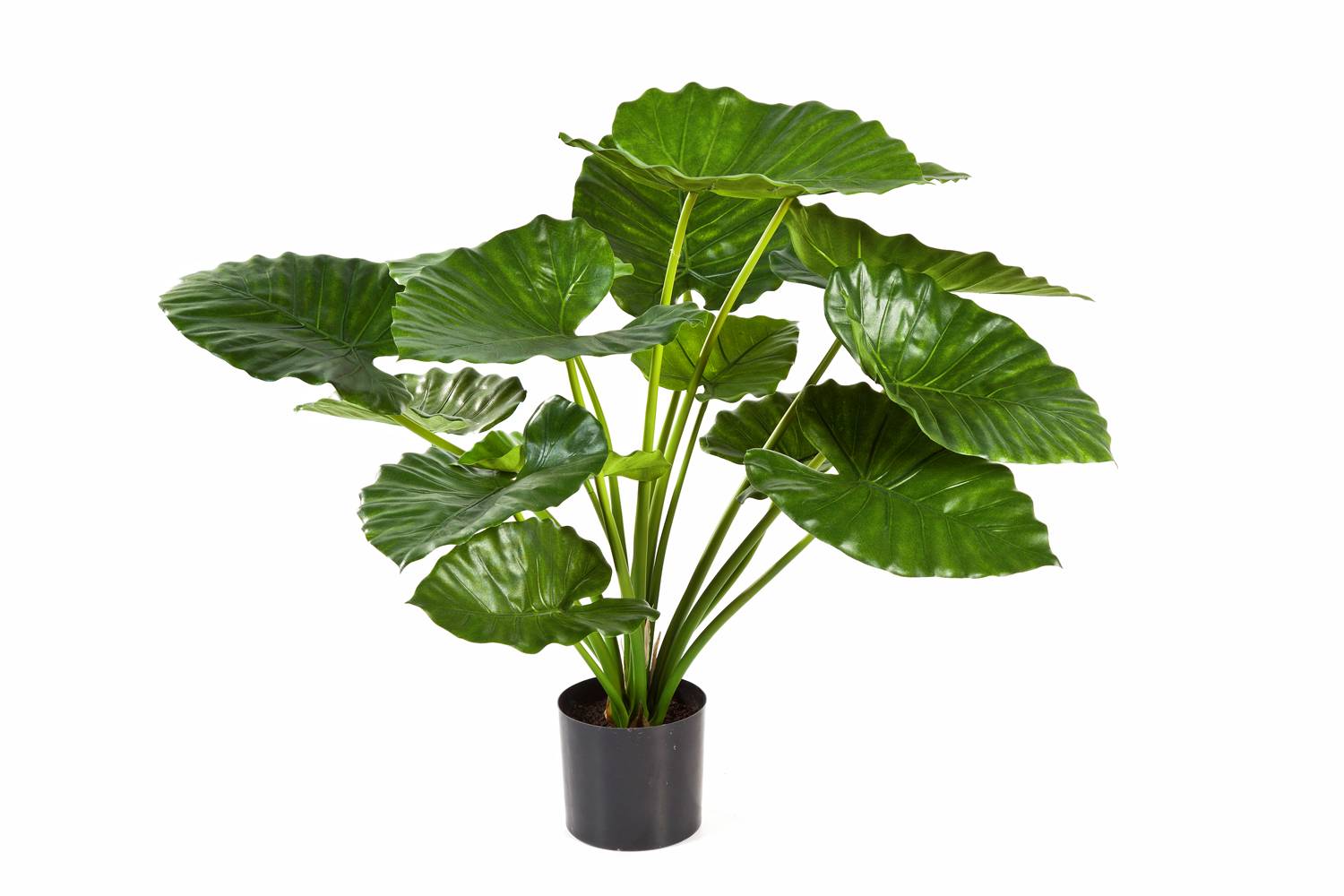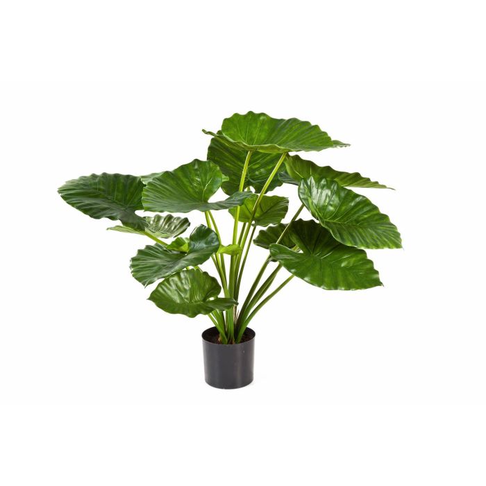 Artificial Alocasia Calidora SALONI with 15 green arrow-shaped leaves. The plant stands approx. 30"/75 cm high and comes potted.