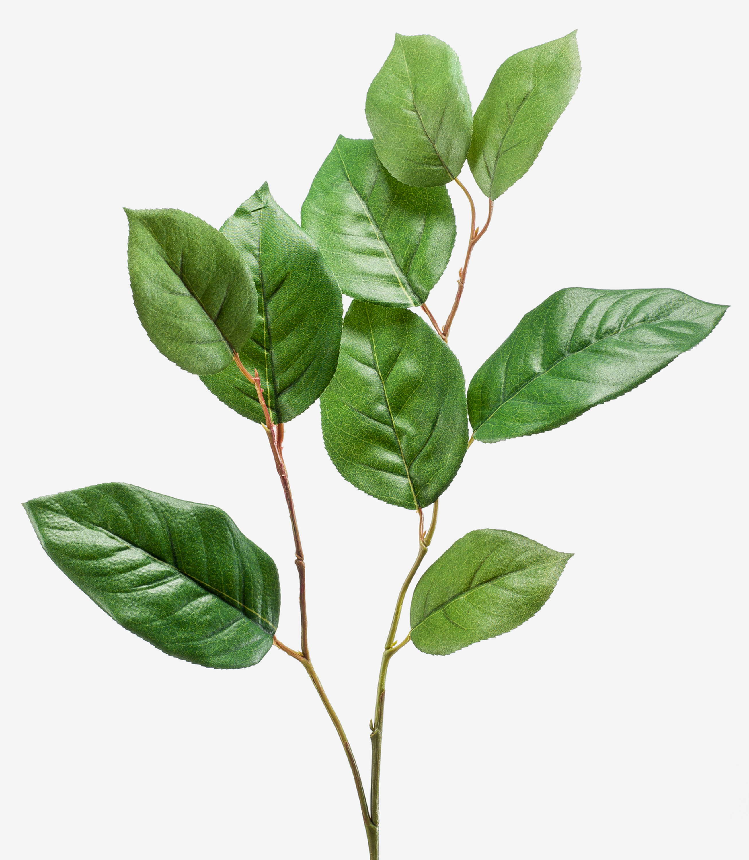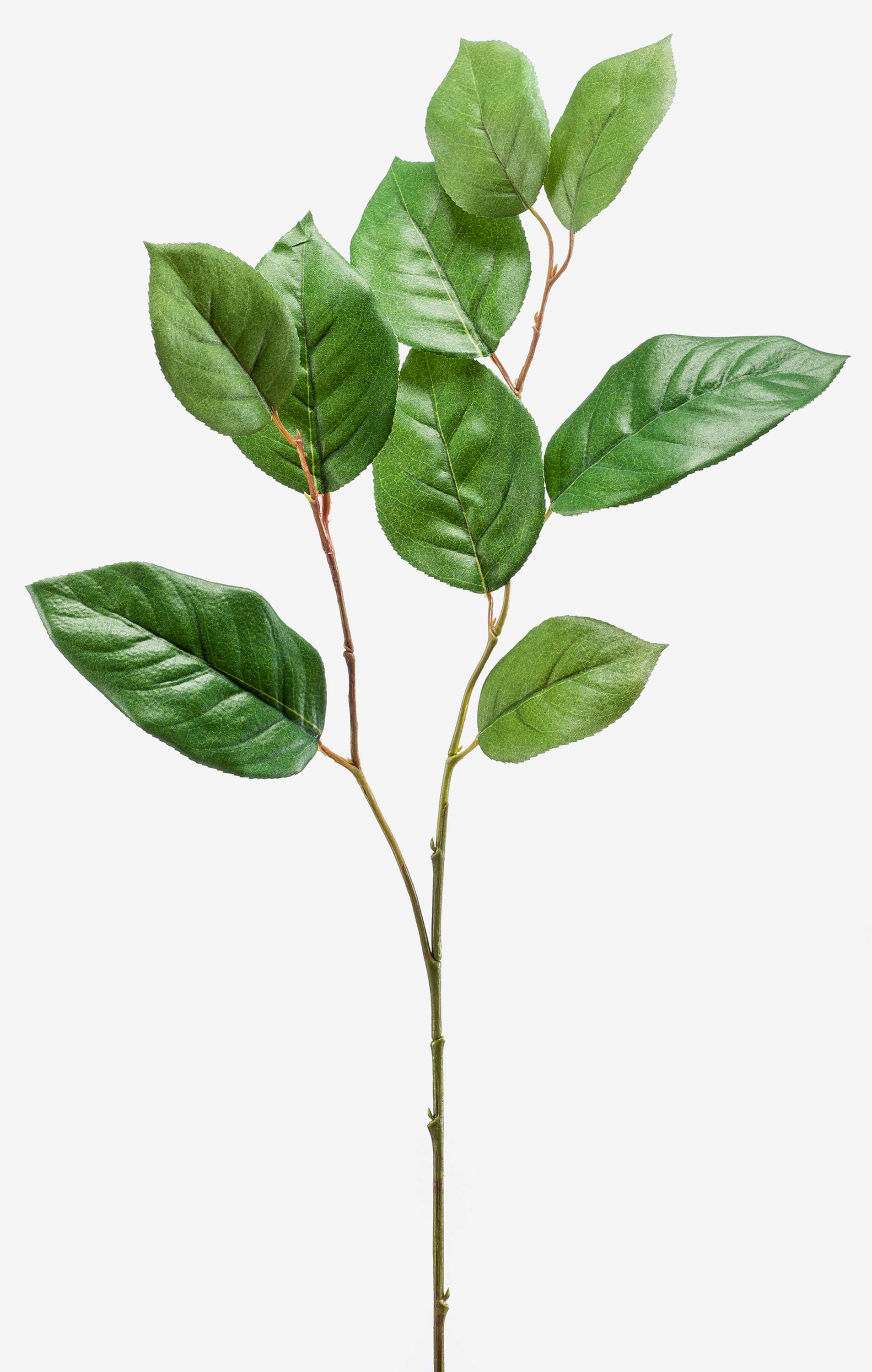 Floral decorative spray KONSTANTIN with ramification and 9 leaves of textile material. The spray measures approx. 30"/75 cm in length.
