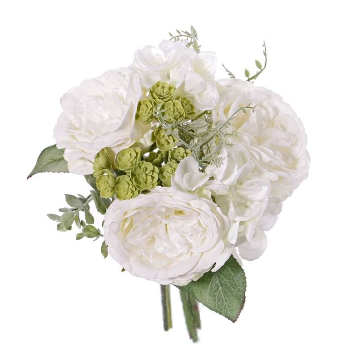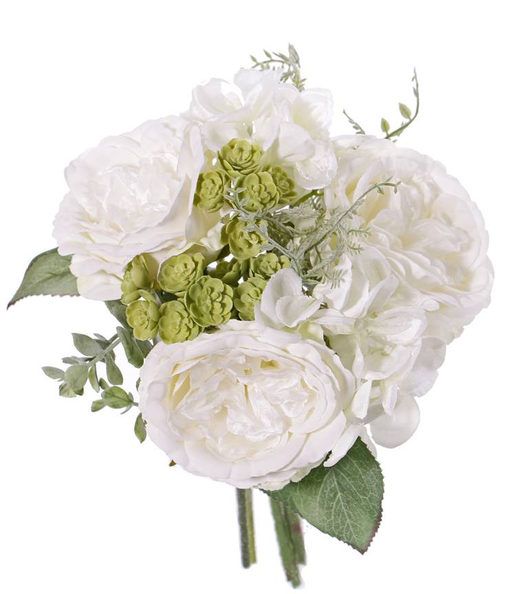 Fake bouquet of roses SIERRA hydrangea, echeveria, white, 10"/25cm, Ø10"/25cm