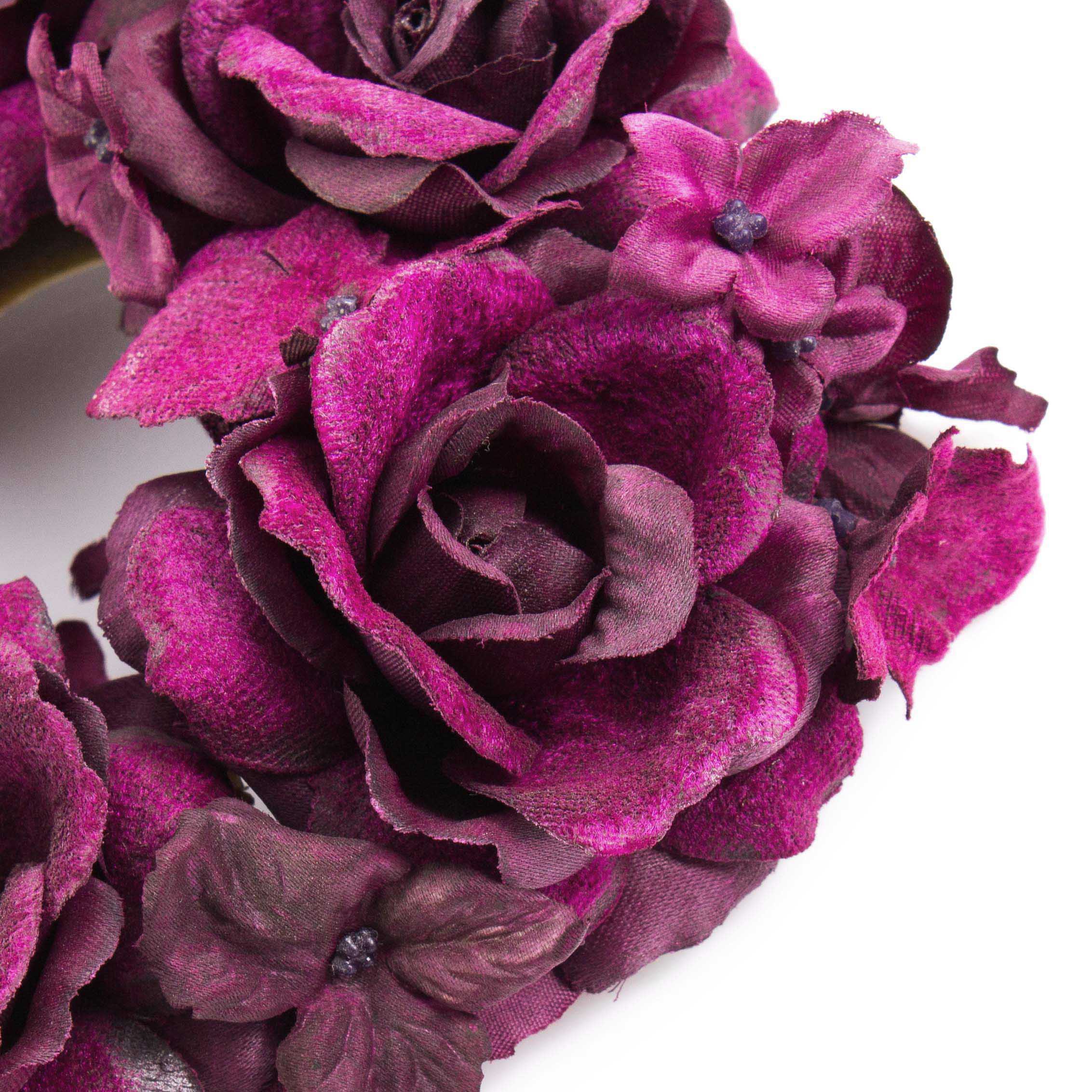 - Consisting of rose heads and many hydrangea flowers crafted from high-quality textile fibre, partly with velvet look satin glossy