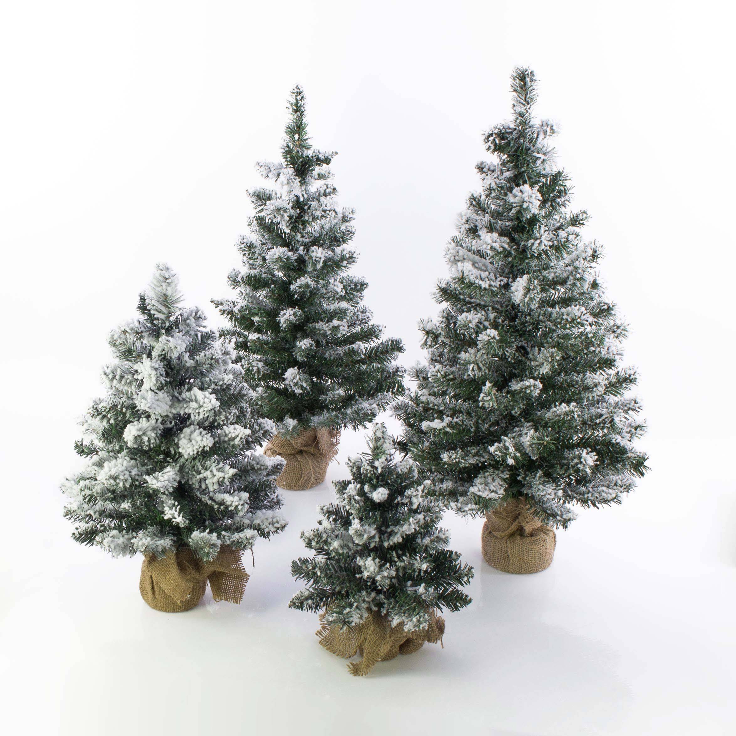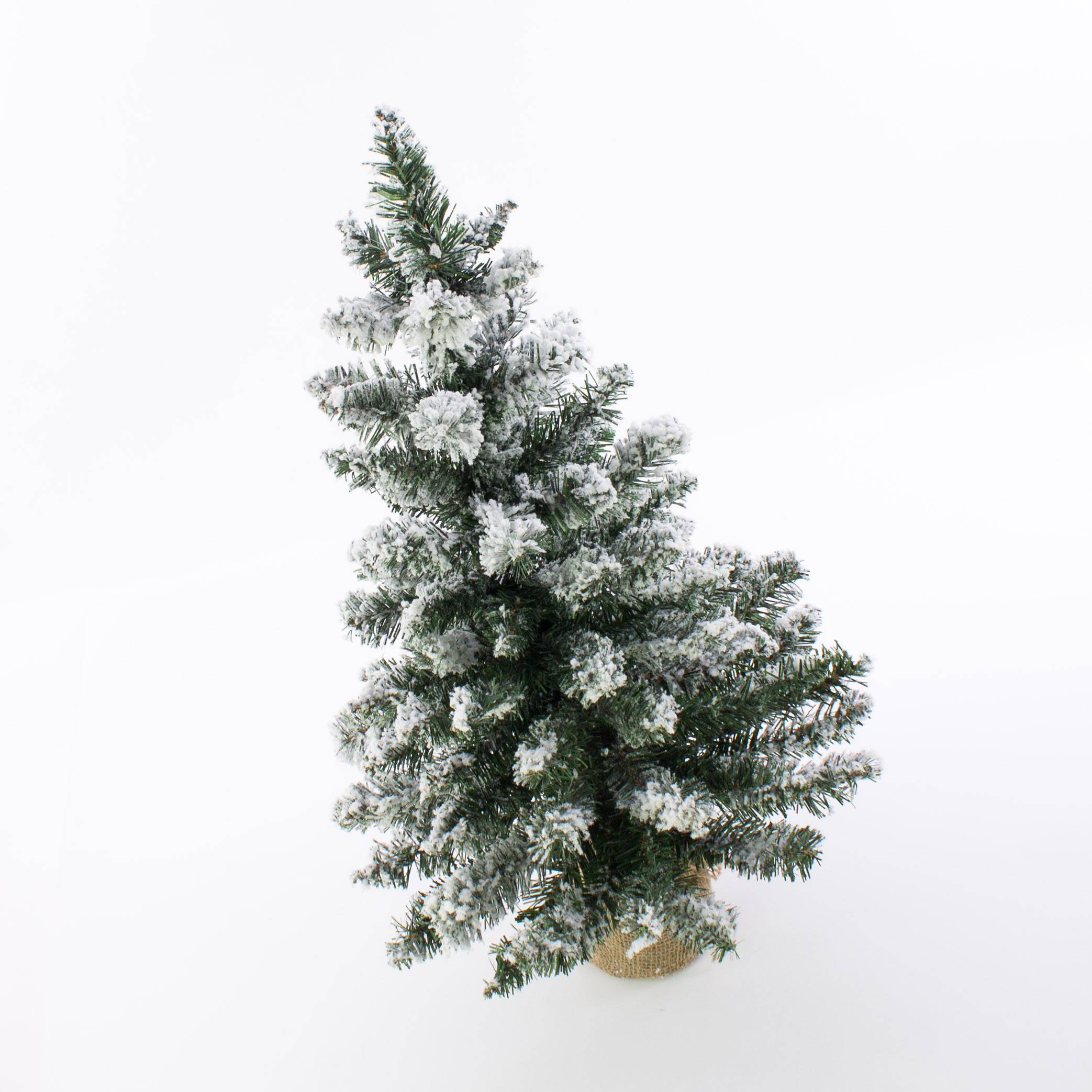 Fake Christmas tree REYKJAVIK, jute bag, snow-covered, white, 24"/60cm, Ø 10"/25cm