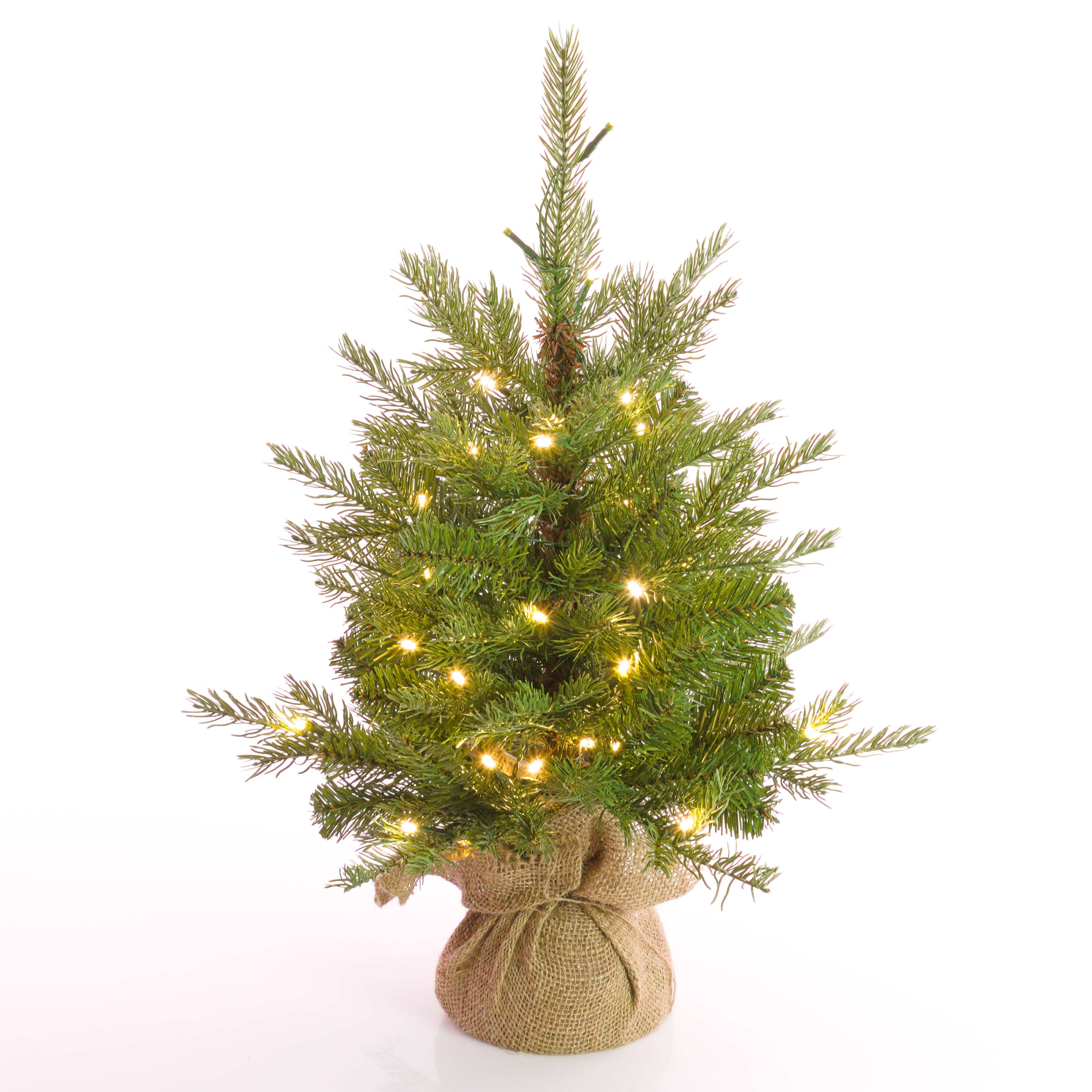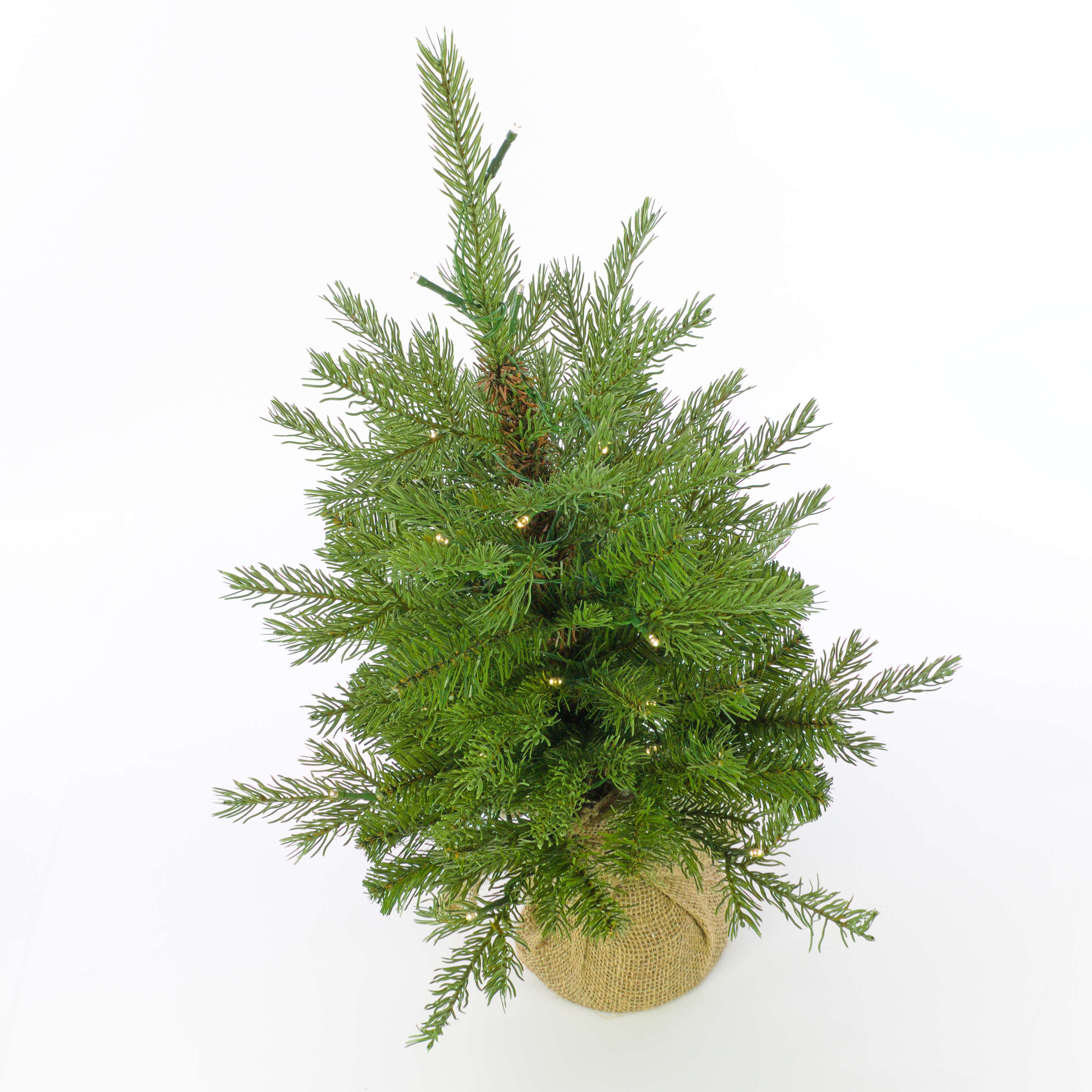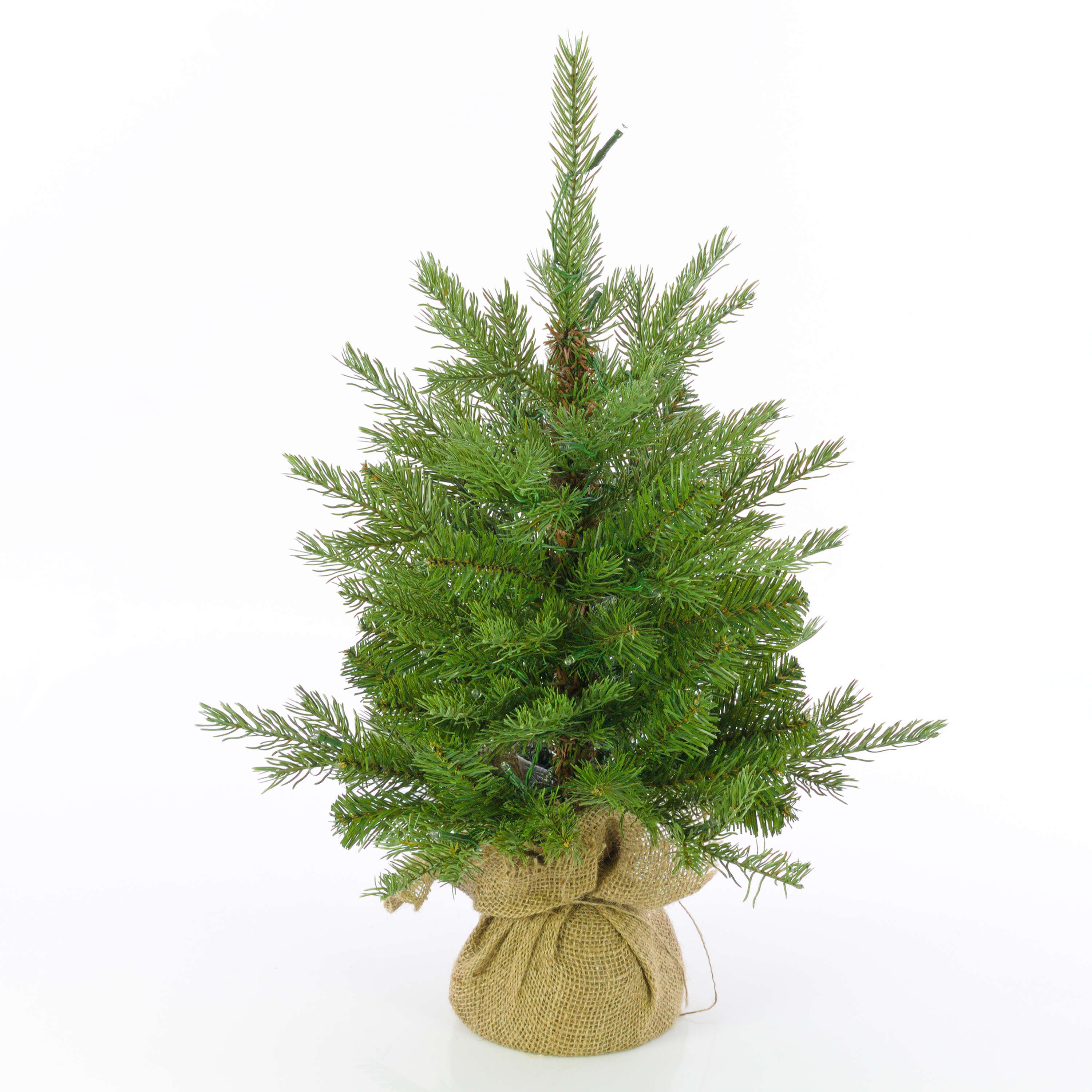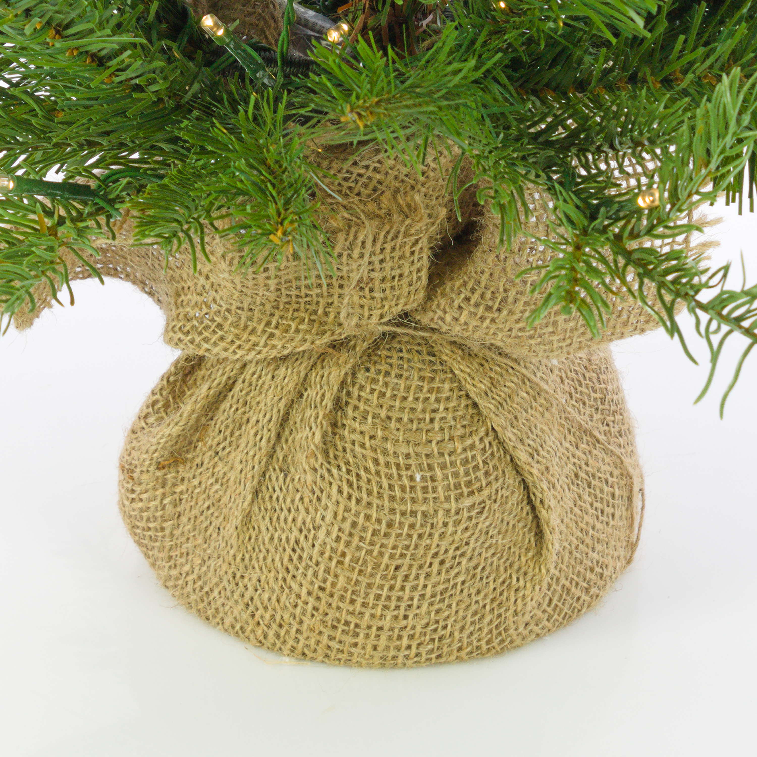 Fake Christmas tree WELLINGTON, jute bag, LEDs, 24"/60cm, Ø 20"/50cm