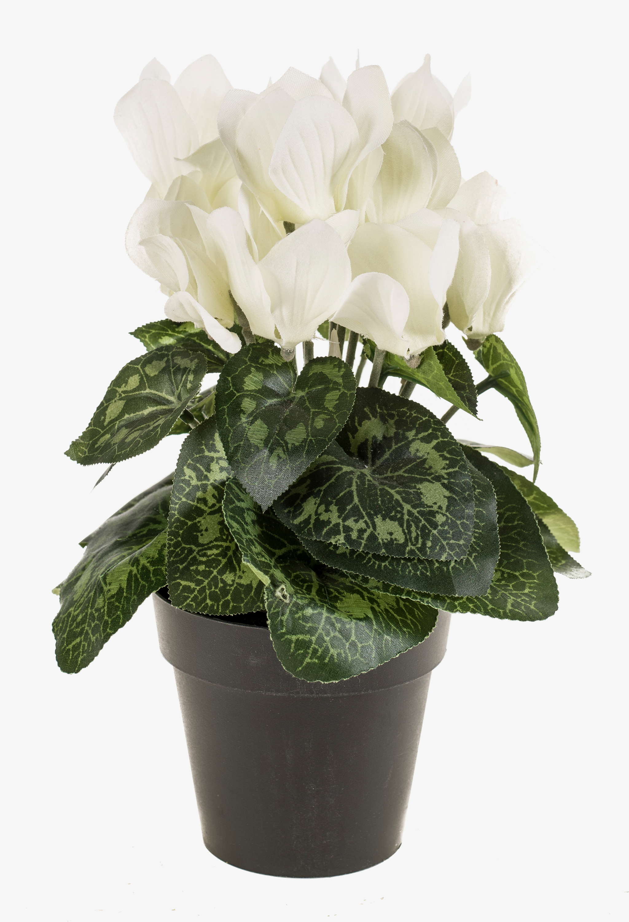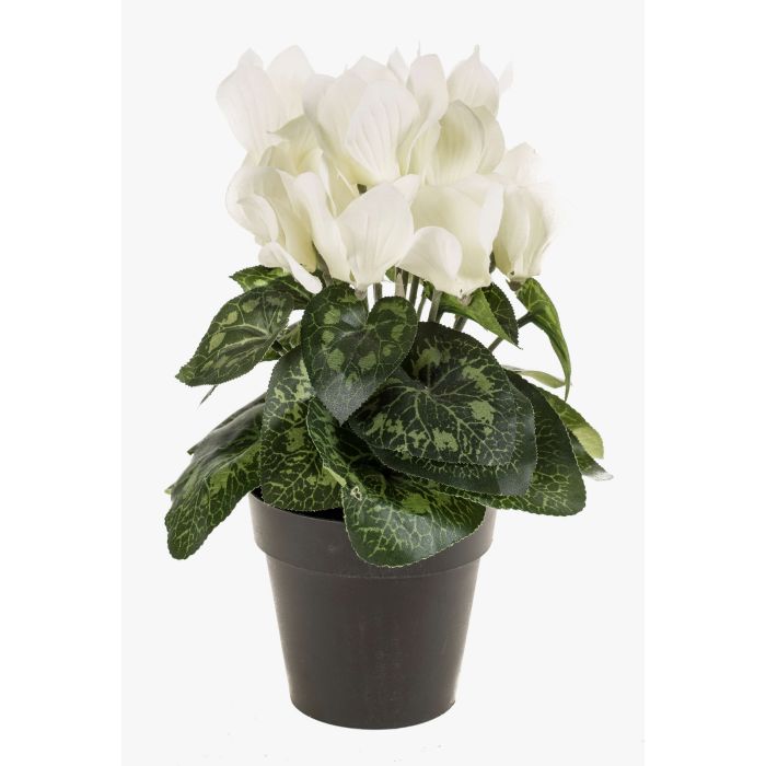 Beautiful artificial Cyclamen HEIDI with 12 blooms in colour cream-white along with 4 buds. The artificial potted Cyclamen stands approx. 10"/25 cm high.