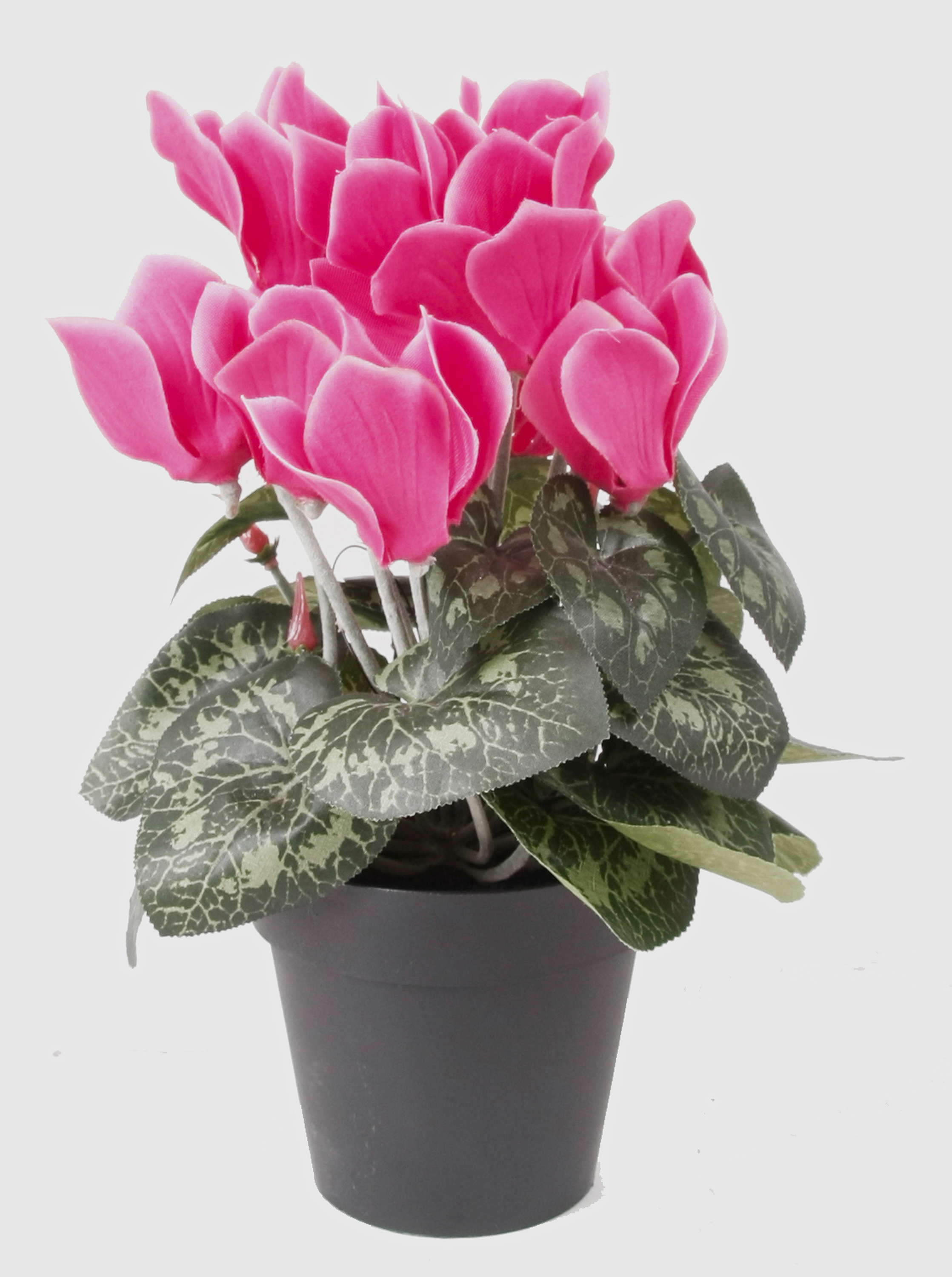 Beautiful Cyclamen HEIDI with 12 blooms in colour pink and 4 buds. The artificial potted Cyclamen stands approx. 10"/25 cm high.