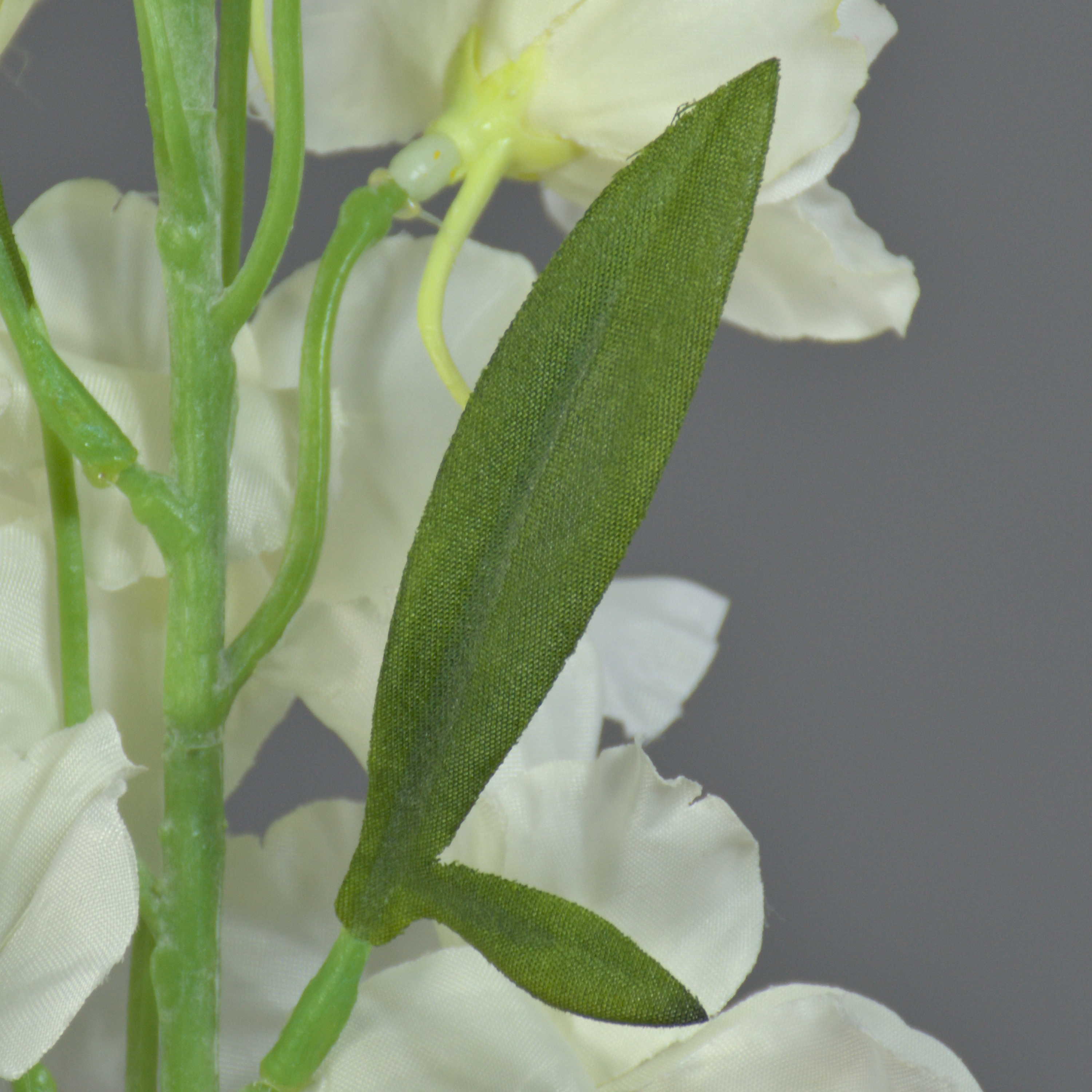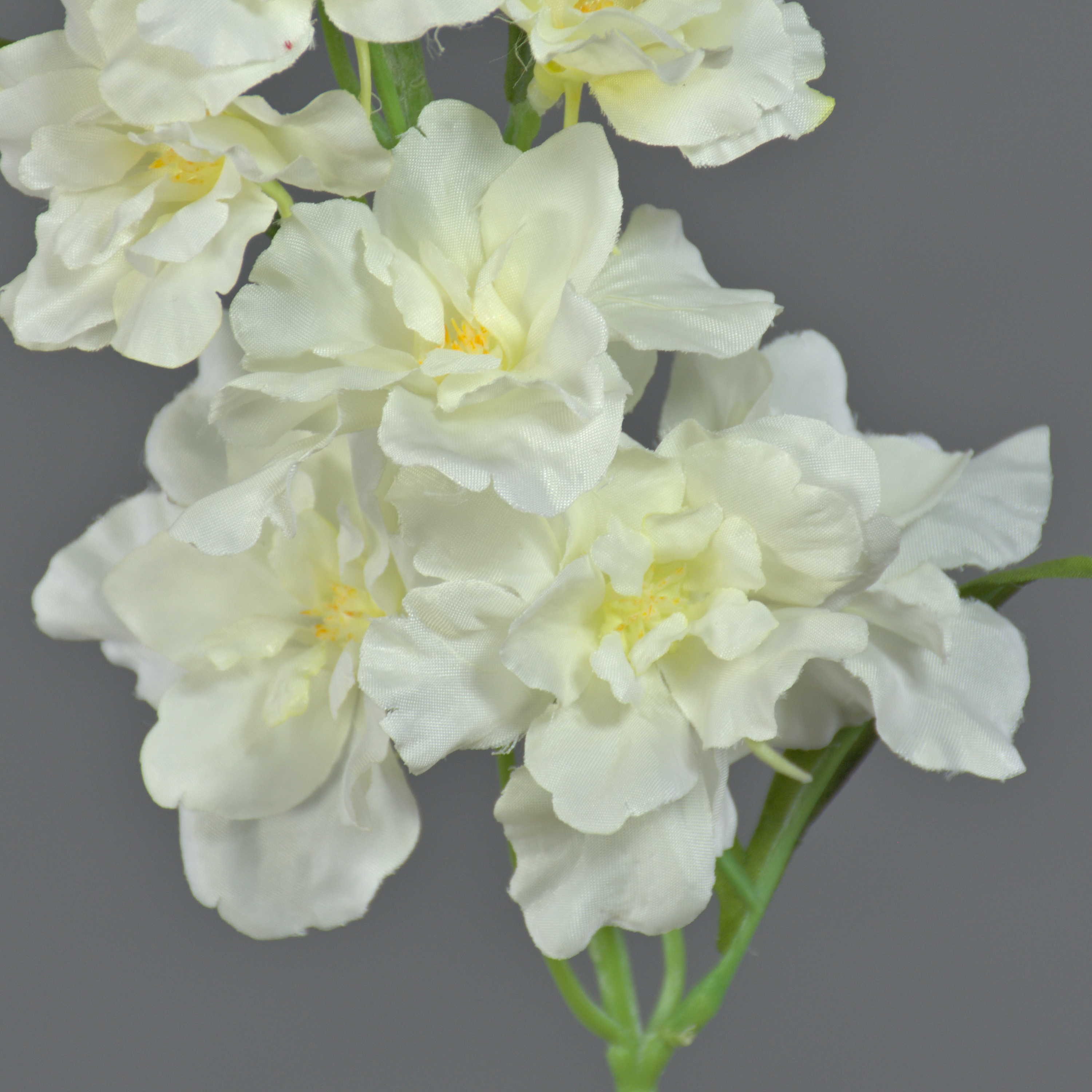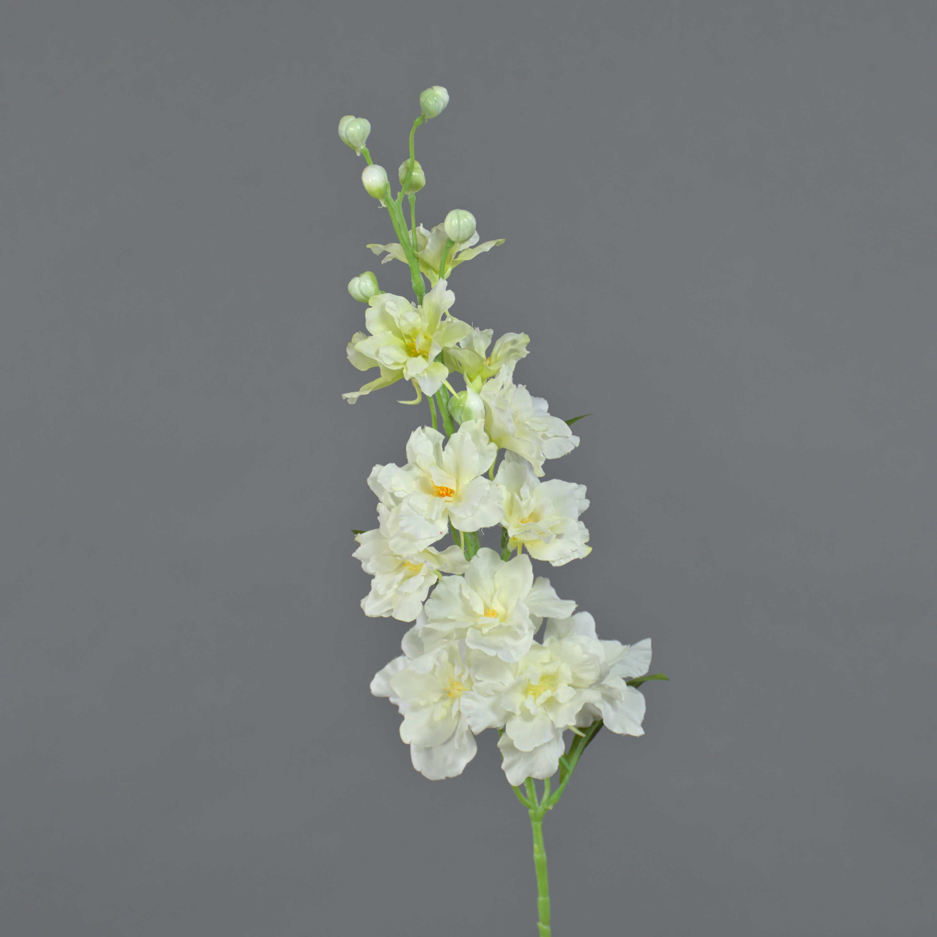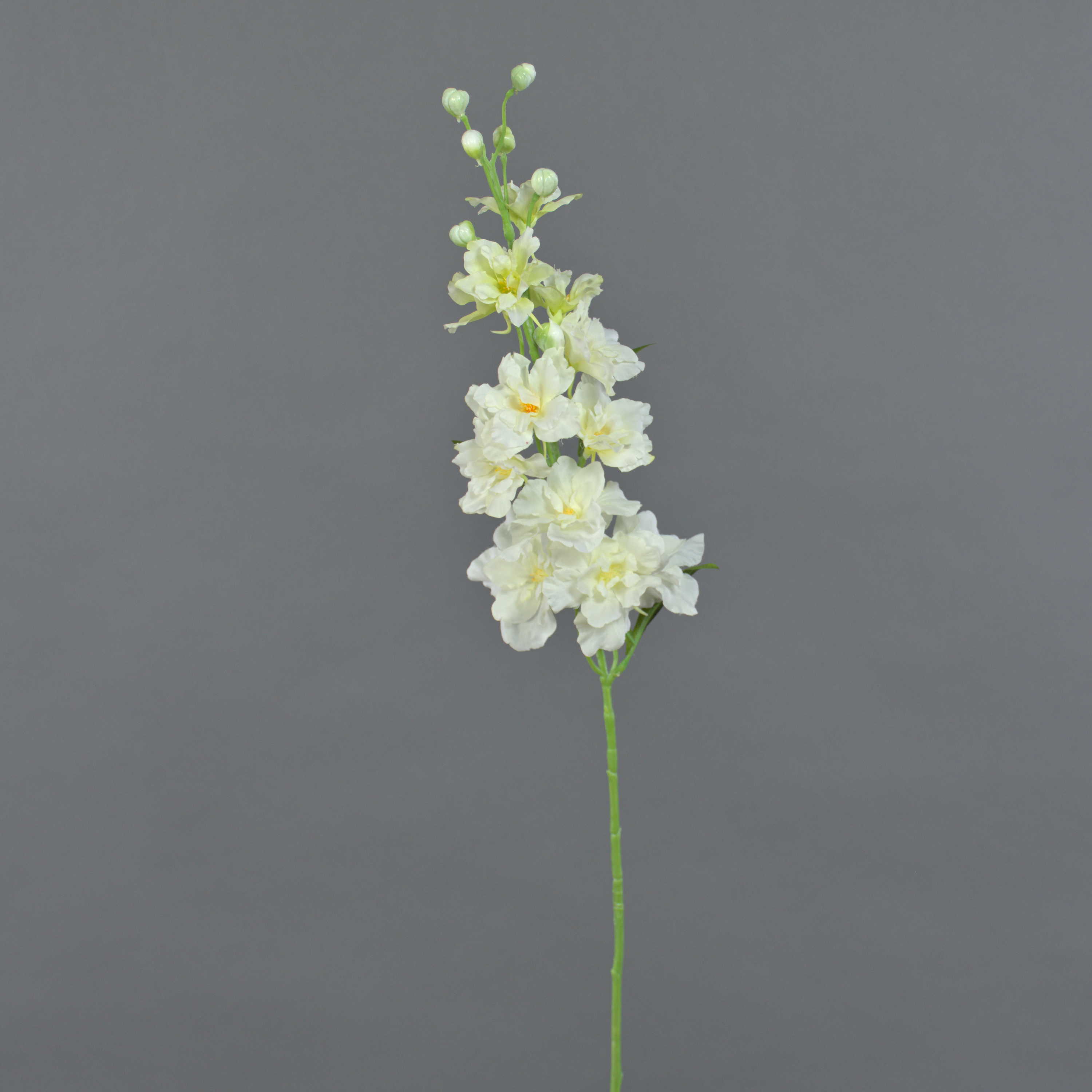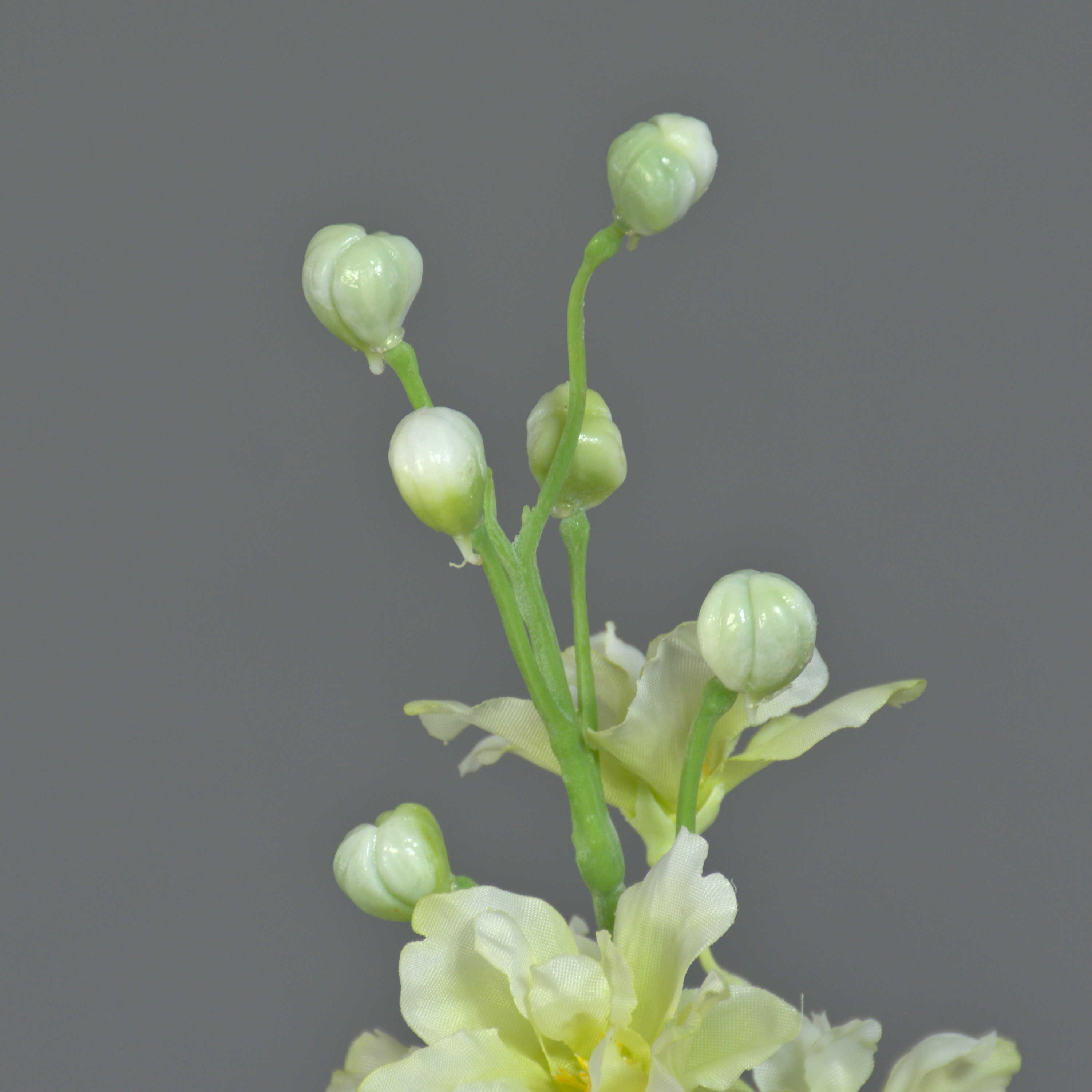 The artificial delphinium RASMINE in colour white-yellow has a total length of approx. 24"/60 cm and a flower diameter of approx. 2"-2.8"/5-7 cm.