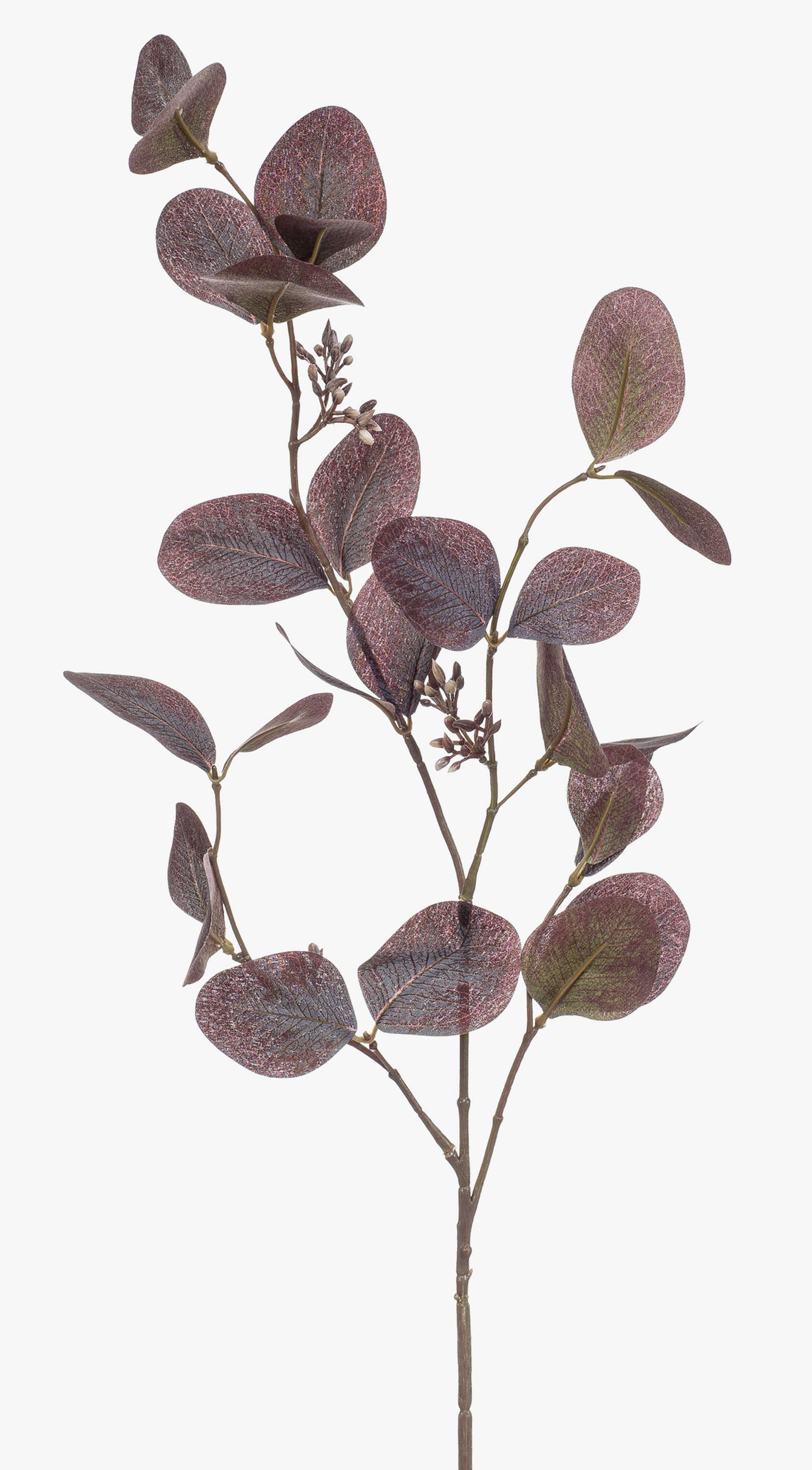 Fake eucalyptus branch MAXEN with fruits, purple-grey, 30"/75cm