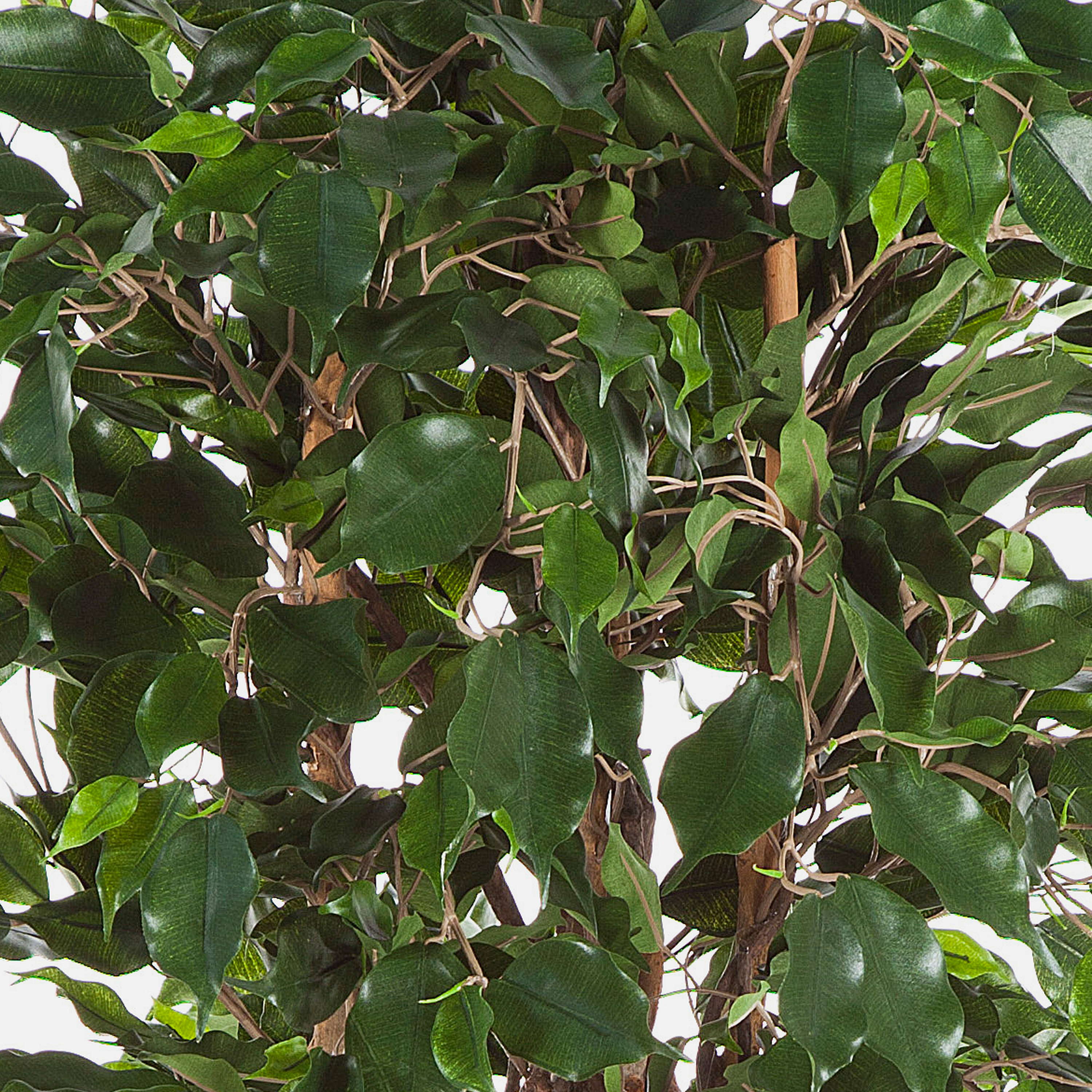 Artificial ficus AMELIO will immediately catch your eye thanks to its numerous twisted stems of natural wood. The lifelike appearance of the artificial ficus, which stands approx. 7ft/210 cm high, will be created by the various green, detailed leaves in different shades of green.