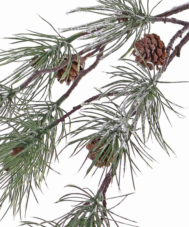 Fake fir branch CALEB with cones, frozen, 31"/80cm
