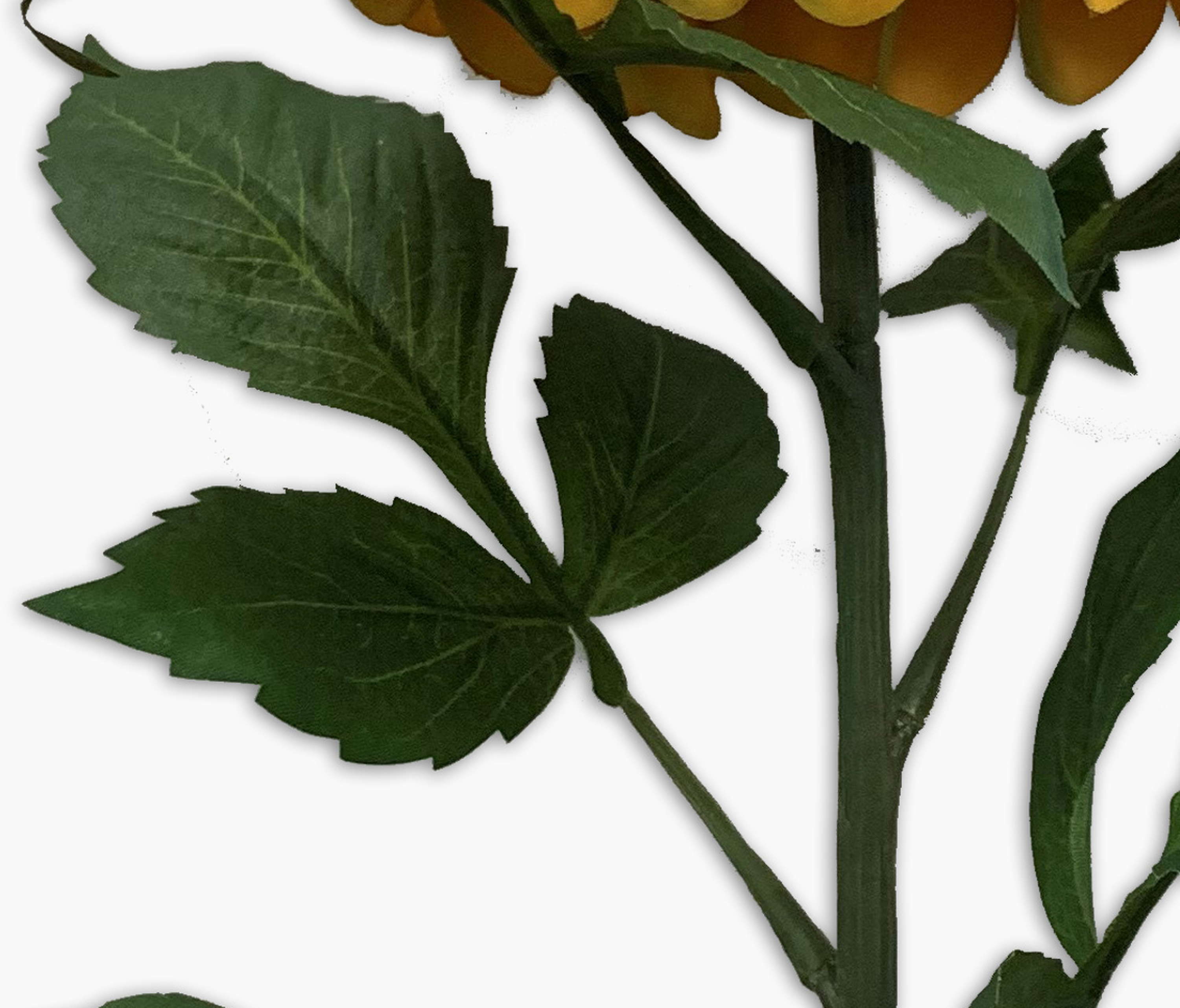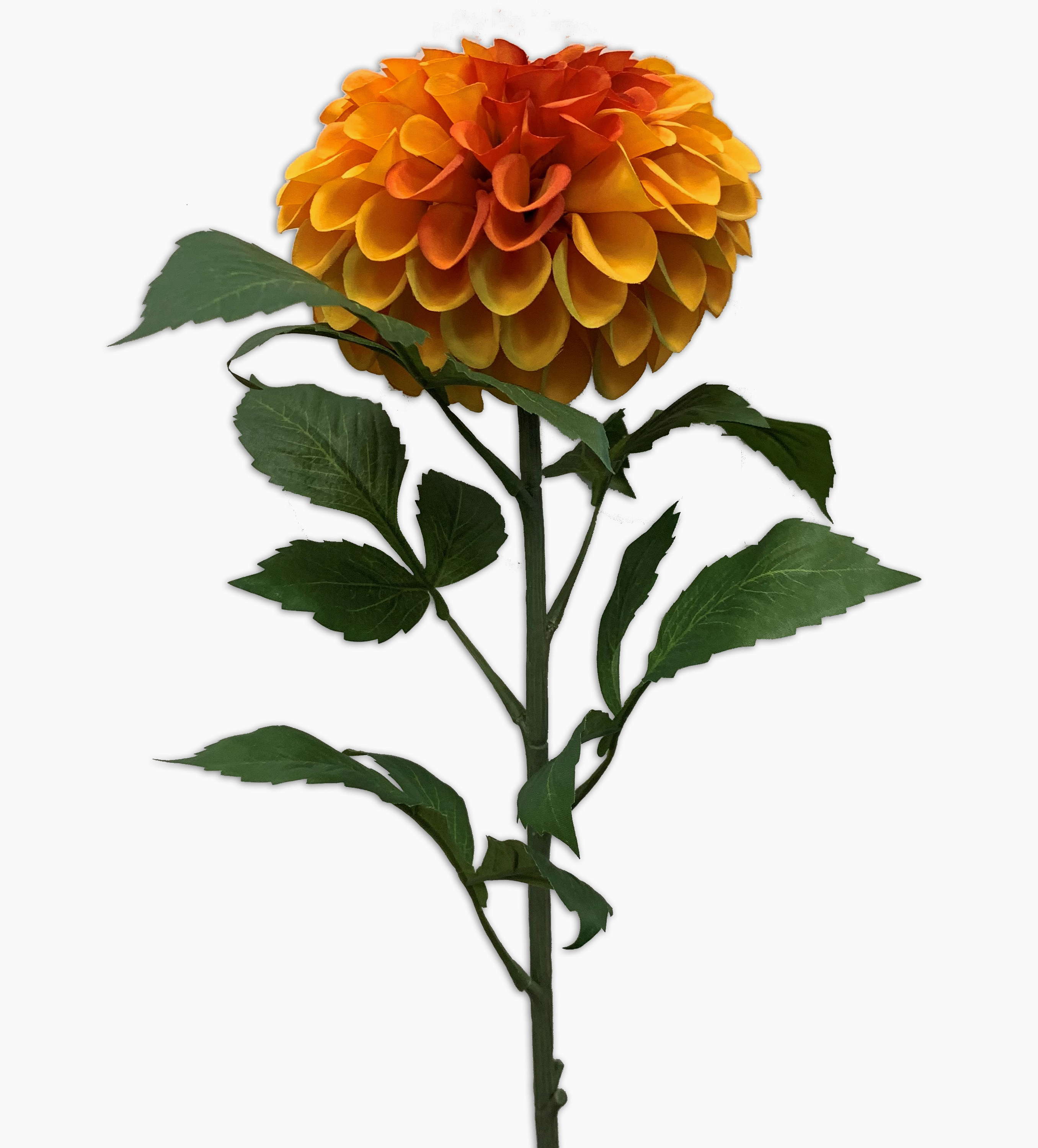 The artificial dahlia MILEYA in colour orange is attached to a stem and has a length of approx. 75 cm.