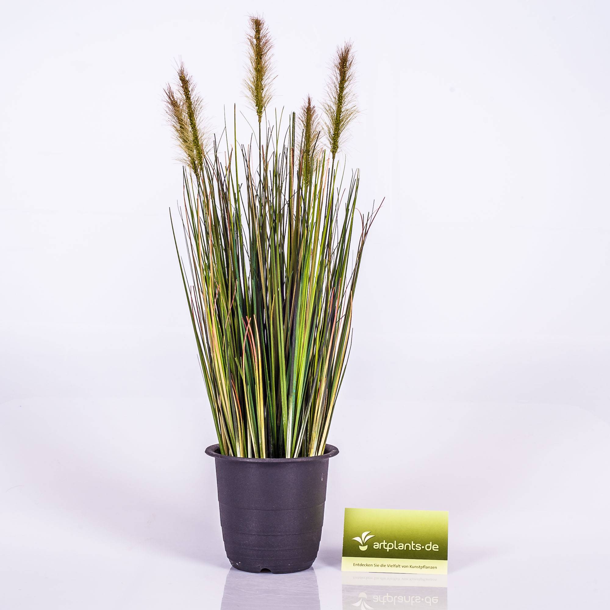 Nice decorative grass in a -small pot. The artificial tuft of grass is green and stands approx. 18"/45 cm high.