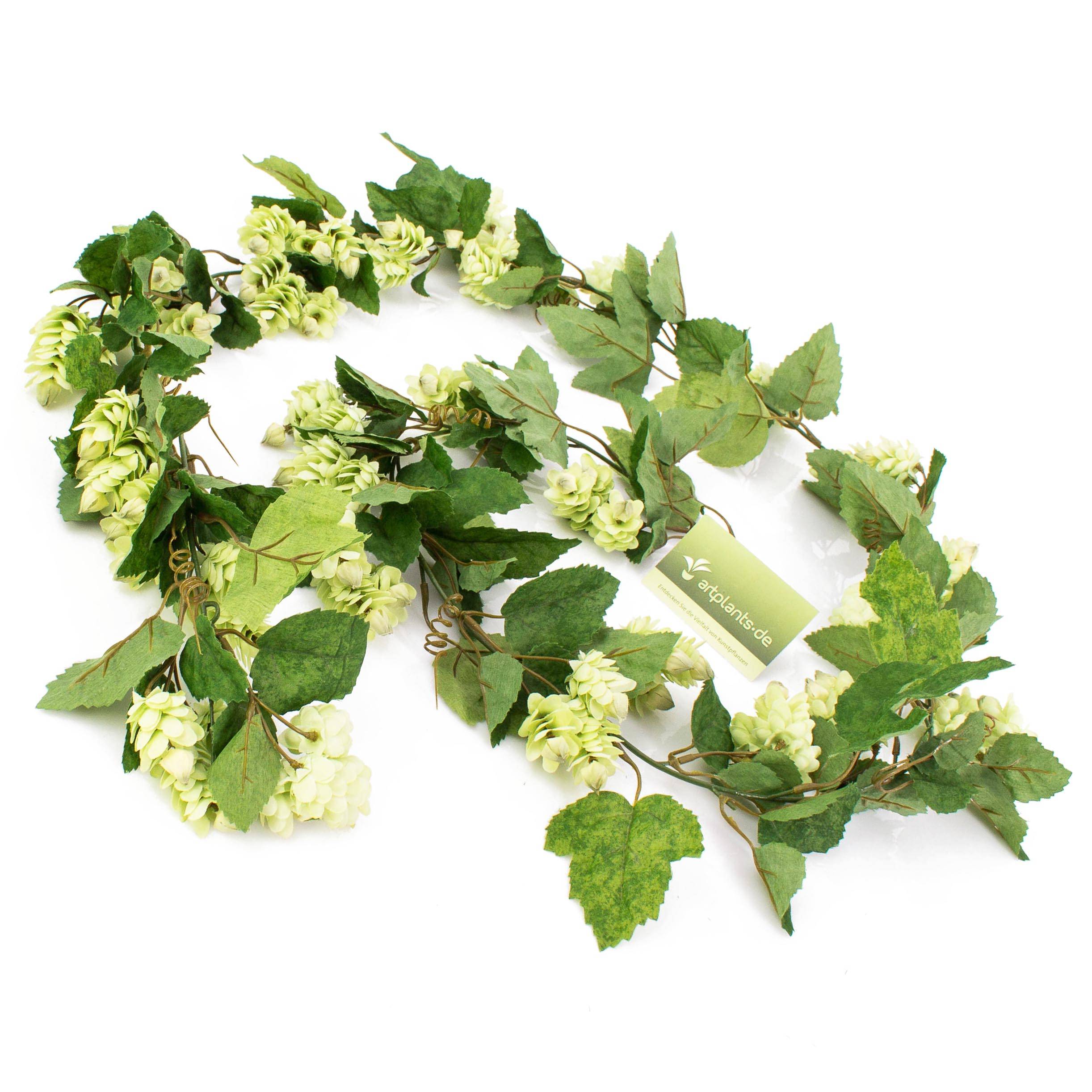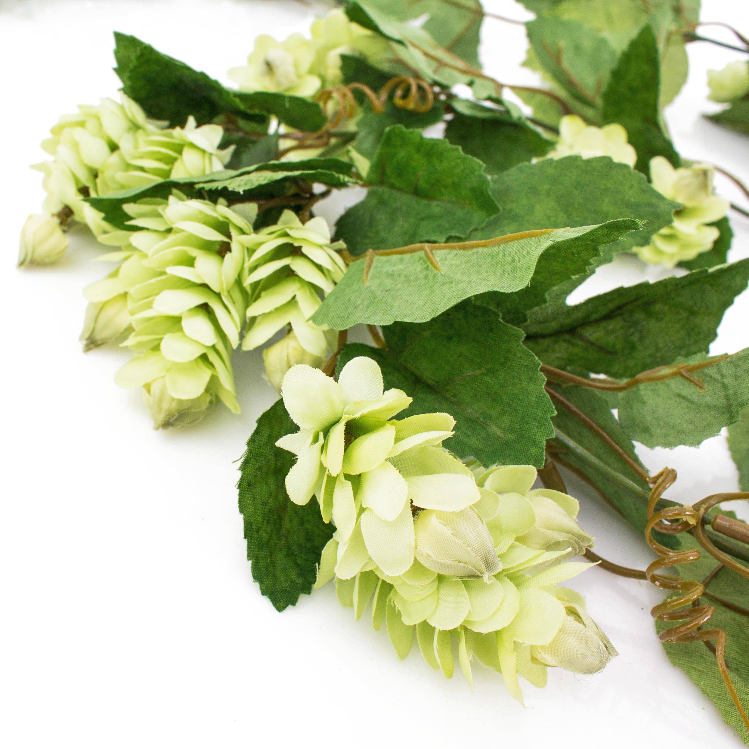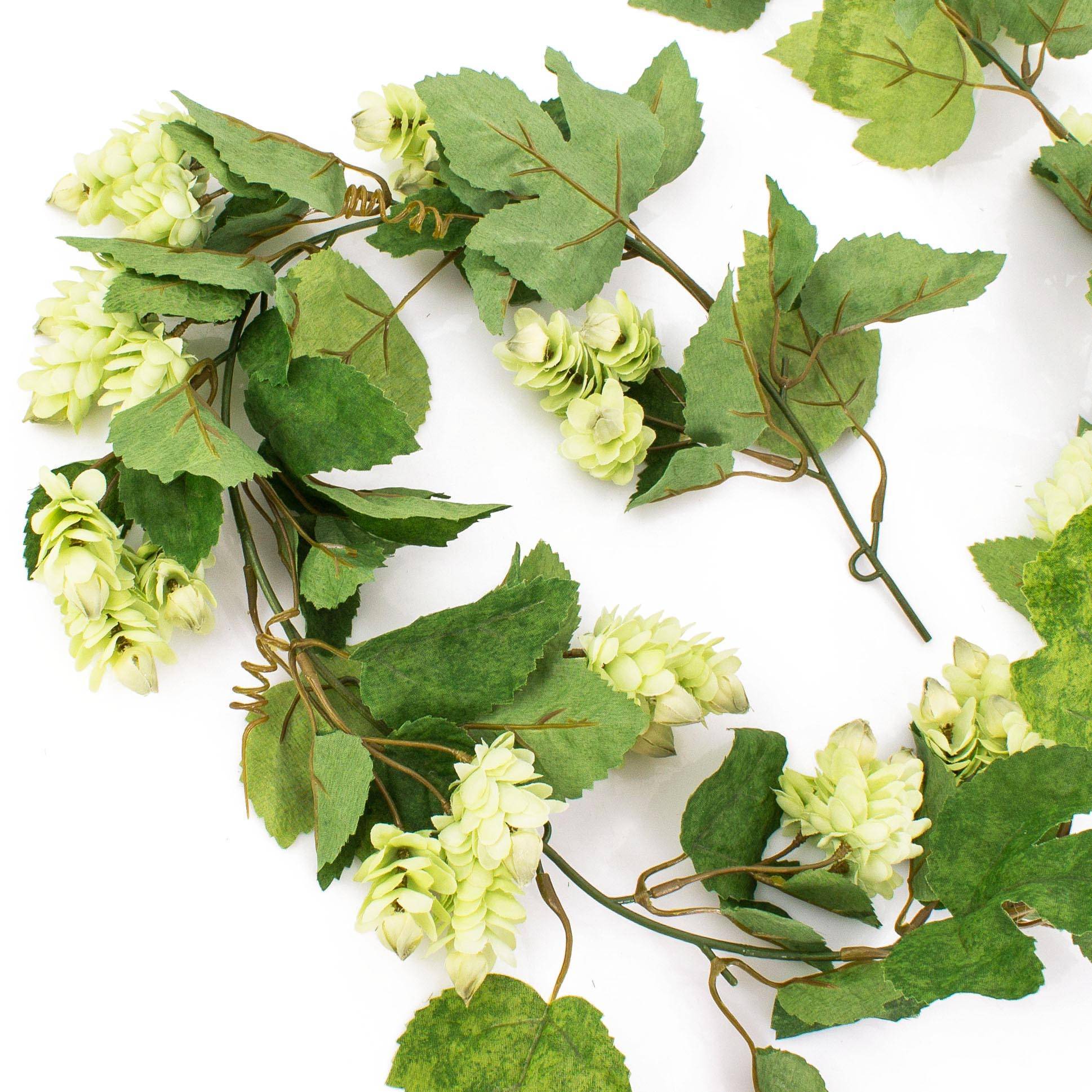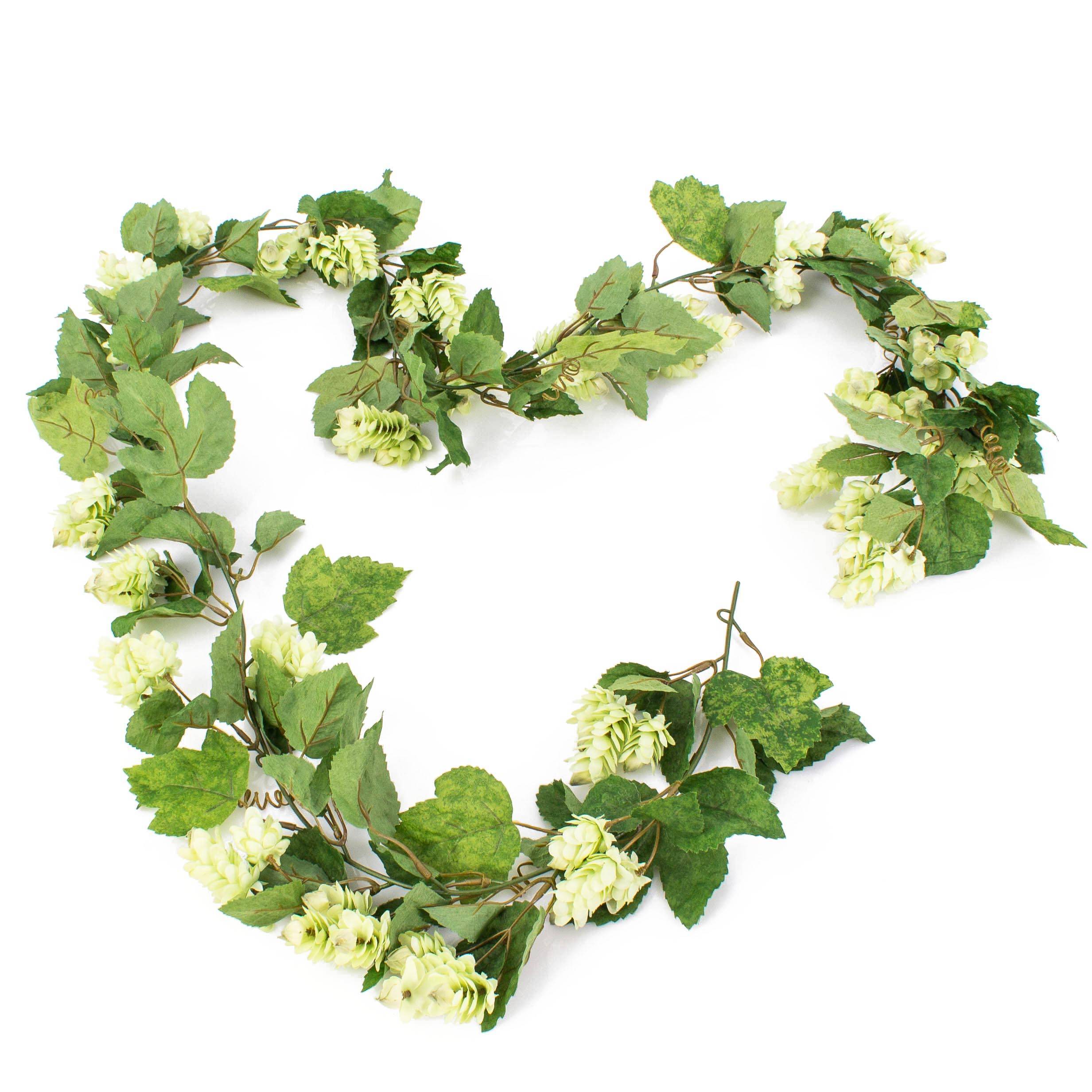 High-quality artificial garland of hops KRATEOS in colour green measures approx. 7ft/200 cm in length. The garland is equipped with 60 umbels and 130 leaves.