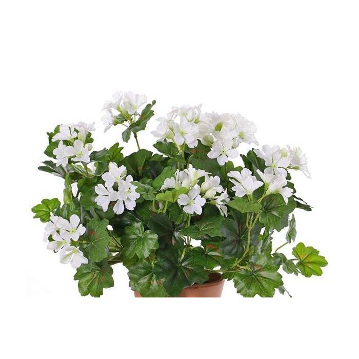 Fake geranium BERENIKE on spike, crossdoor, white, 16"/40cm, Ø2"-3.1"/5-8cm