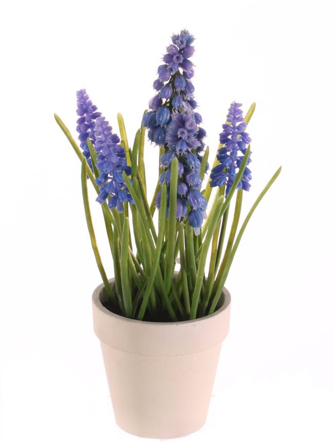 Fake grape hyacinth ARABELLA, decorative pot, purple-blue, 10"/25cm, Ø0.8"-1.2"/2-3cm